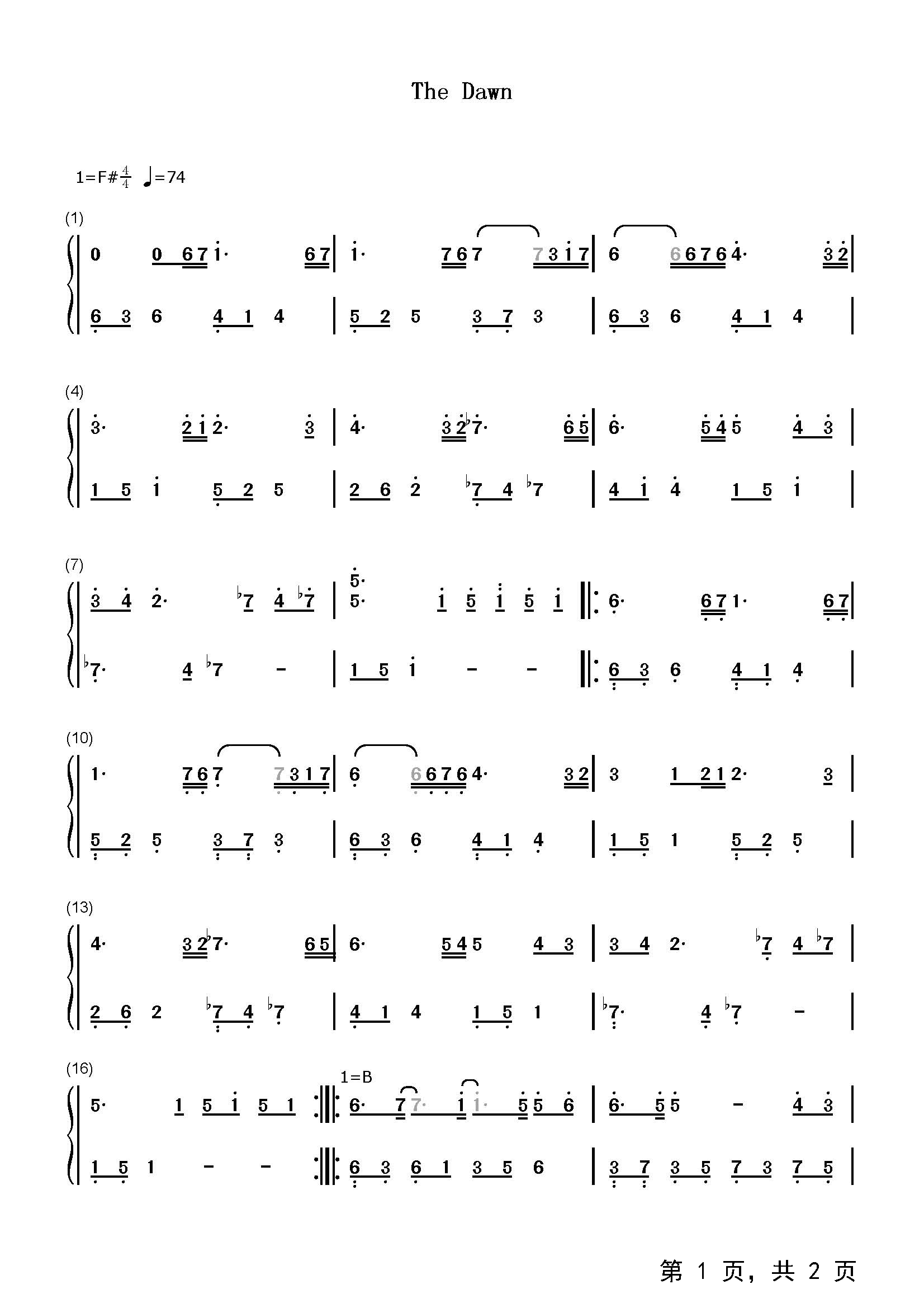 作品曲调:升F调