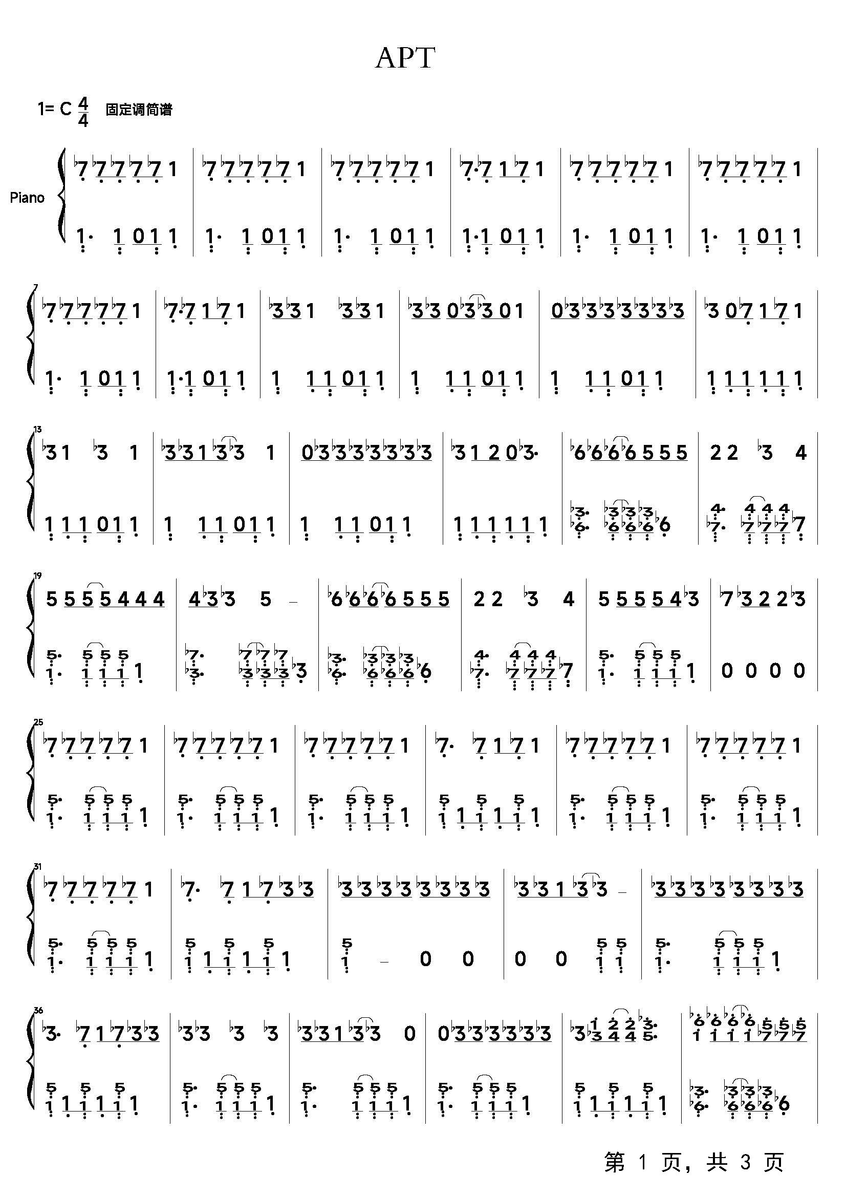 《APT.》是朴彩英(ROSÉ)和布鲁诺·马尔斯演唱的流行歌曲,由朴彩英、布鲁诺·马尔斯、艾米·艾伦、克里斯托弗·布朗、罗热·查海德等人完成词曲,于2024年10月18日作为朴彩英首张录音室专辑《rosie》的先导主打单曲发行 。