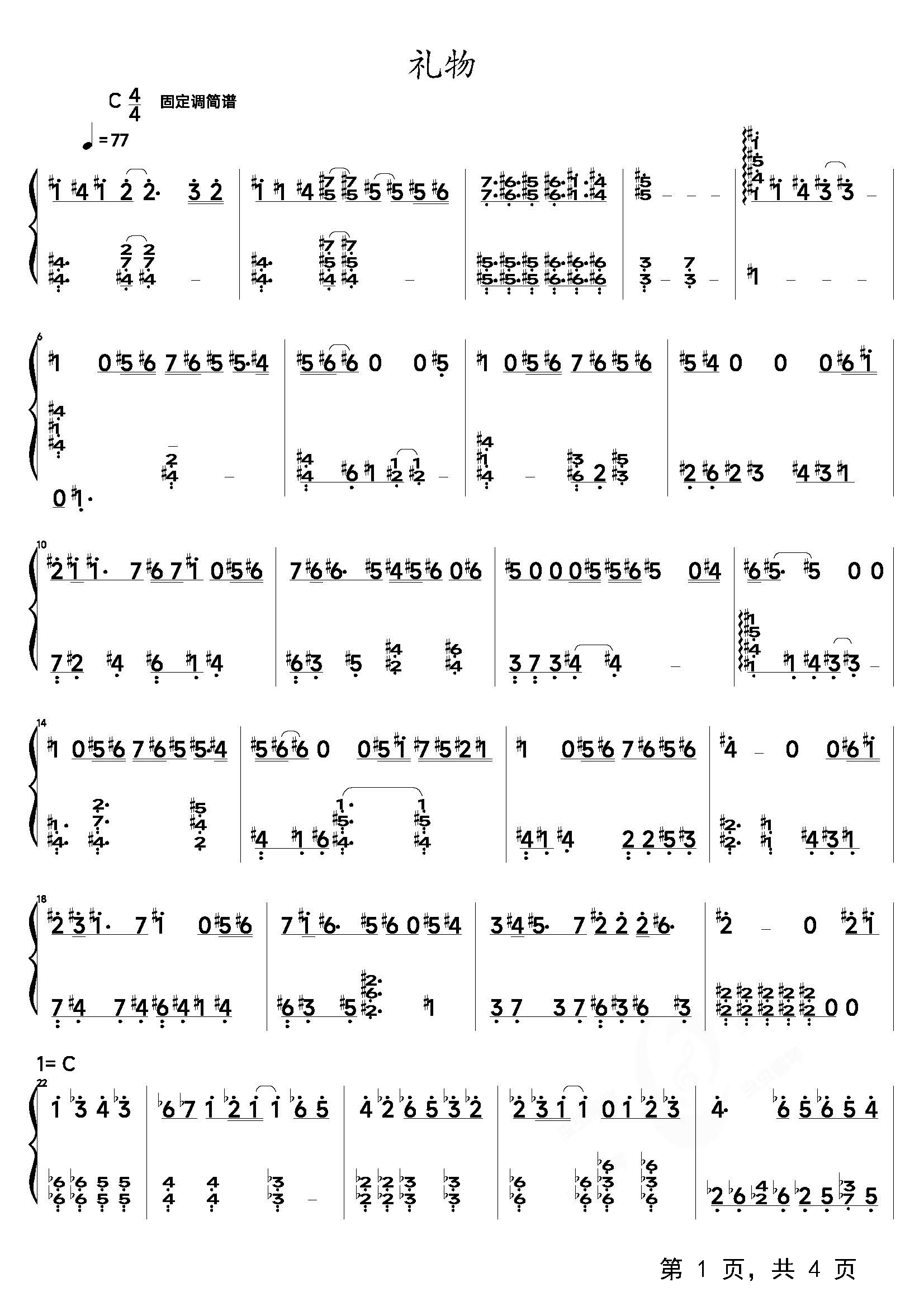 作品分类:流行钢琴简谱