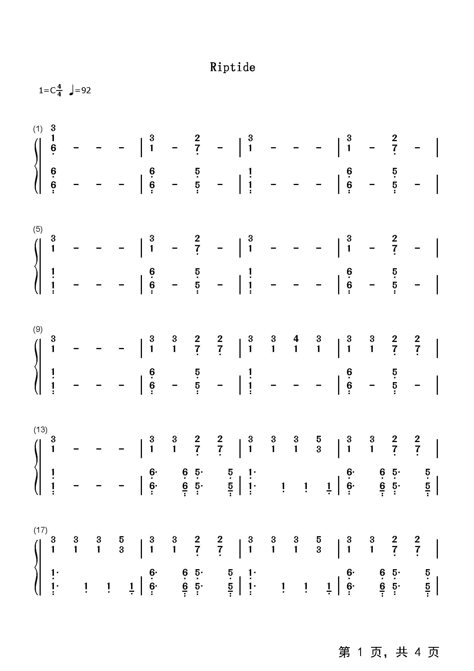 作品分类:流行钢琴简谱
