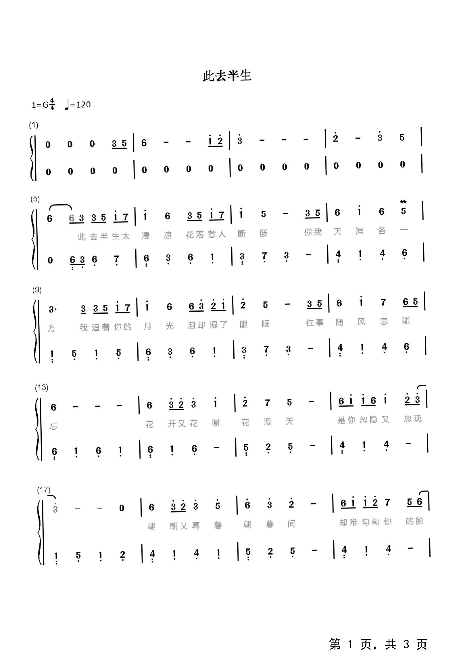 作品分类:流行钢琴简谱