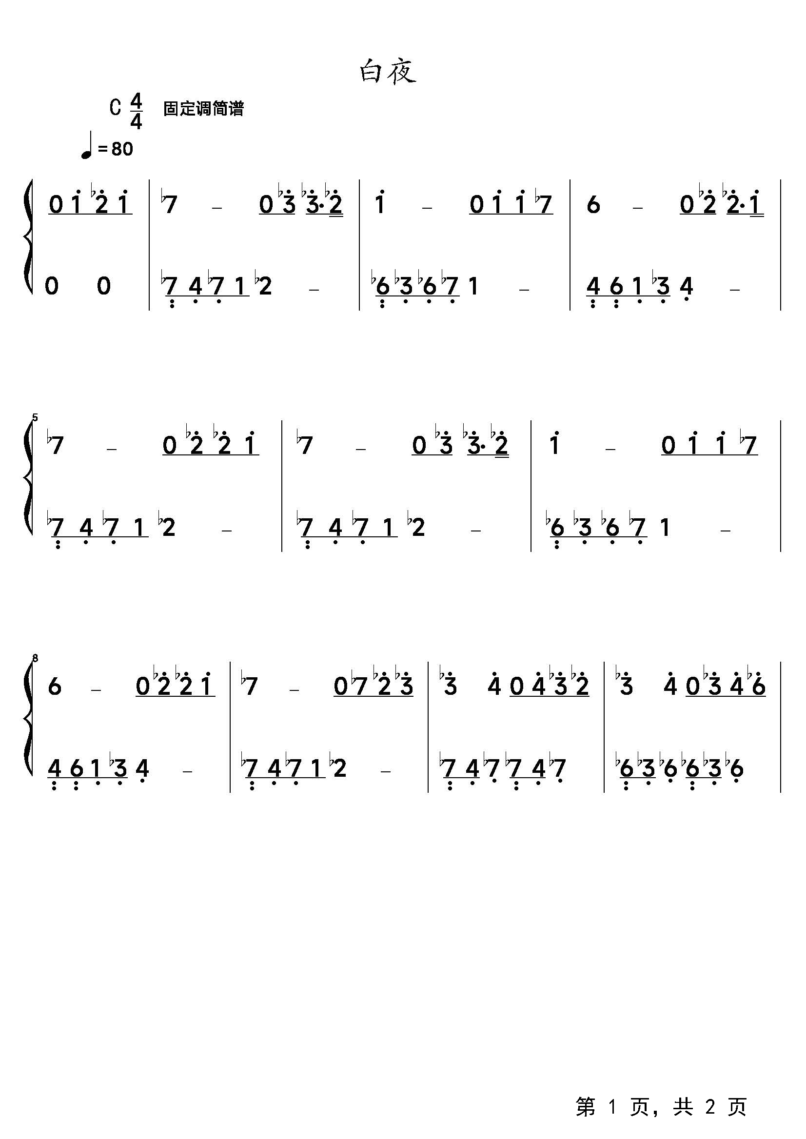 作品分类:流行钢琴简谱
