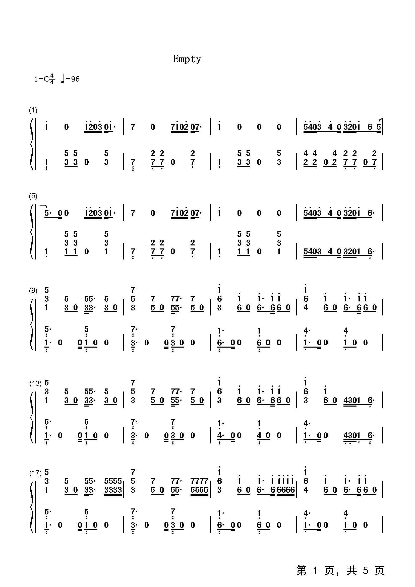 作品分类:流行钢琴简谱