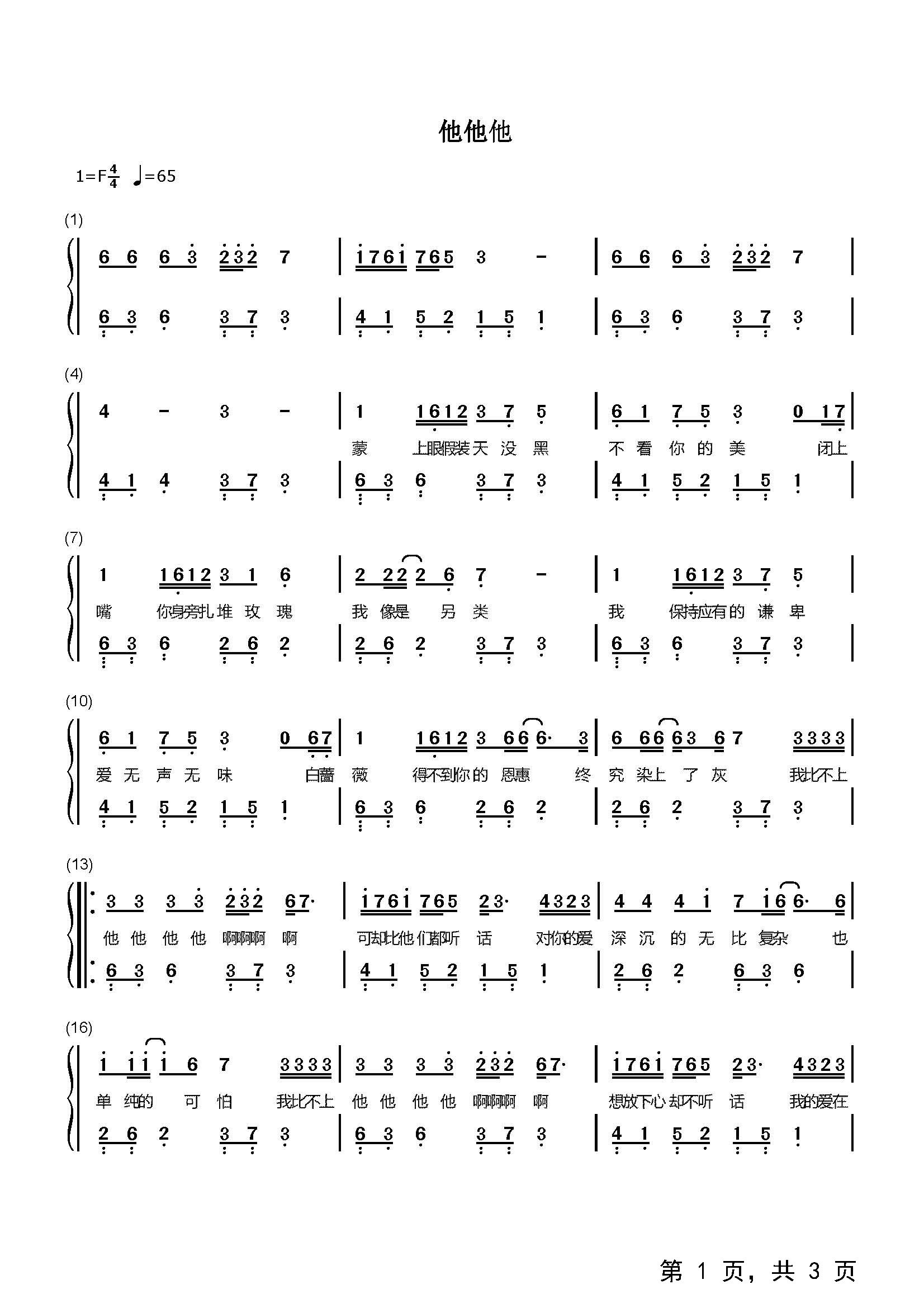作品曲调:F调