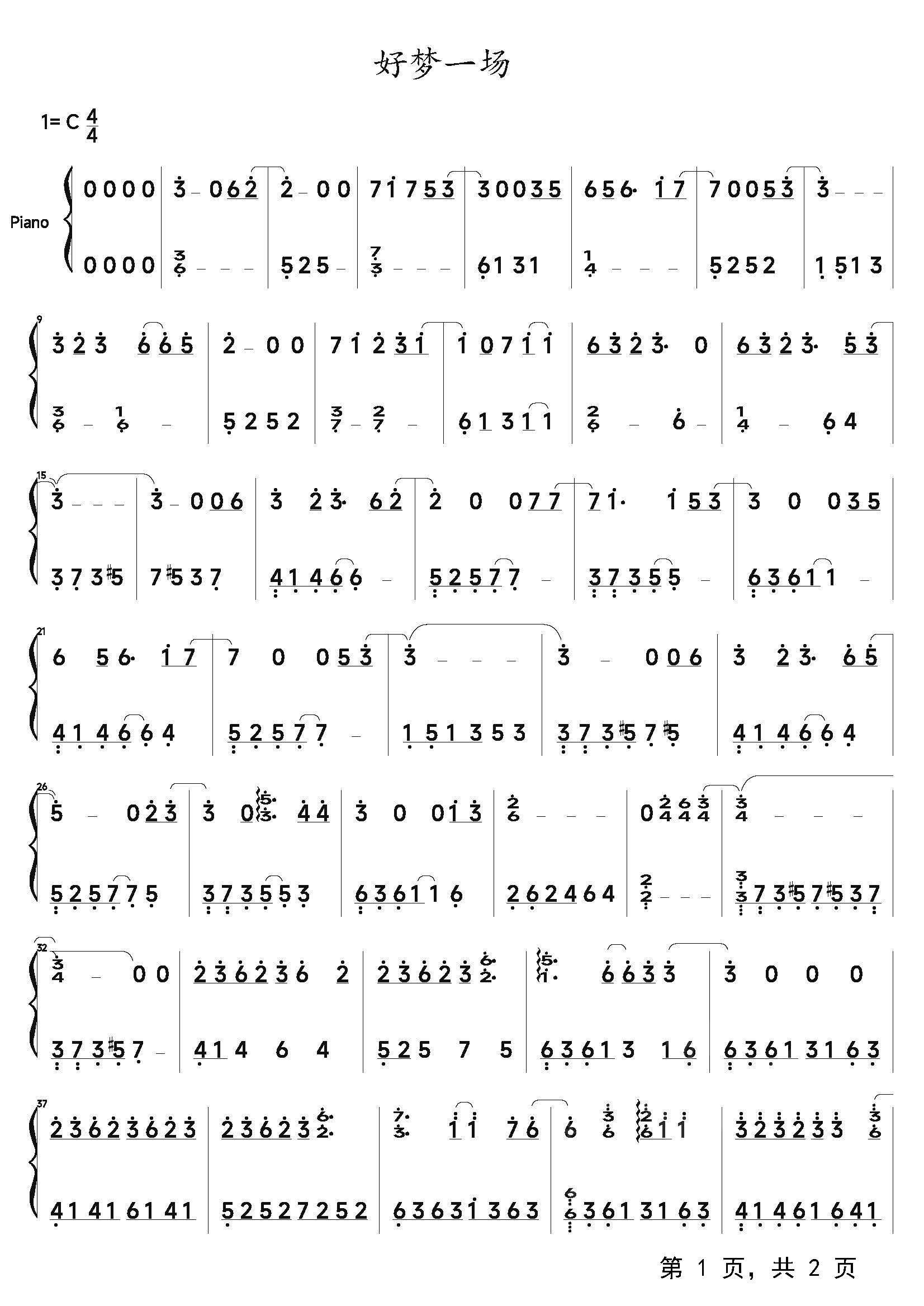 作品分类:流行钢琴简谱