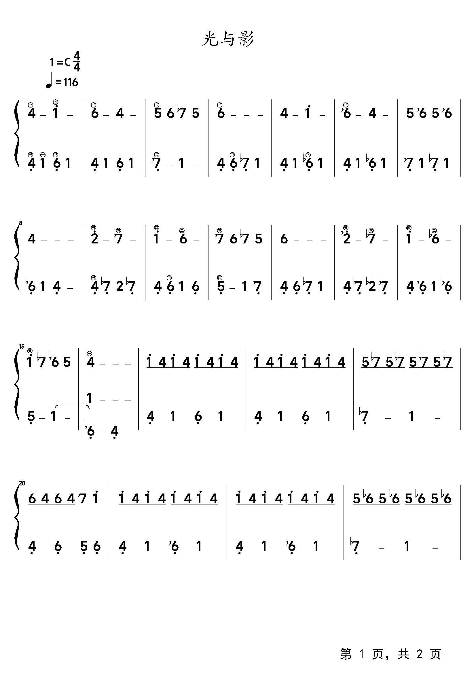 作品分类:流行钢琴简谱