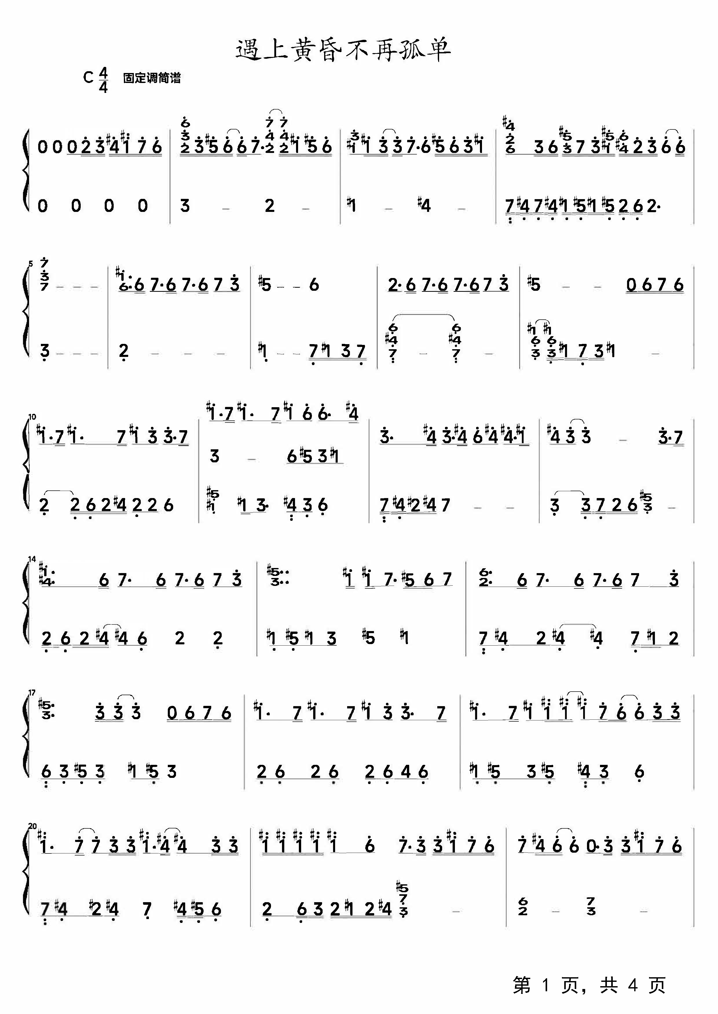 遇上黄昏不再孤单钢琴谱