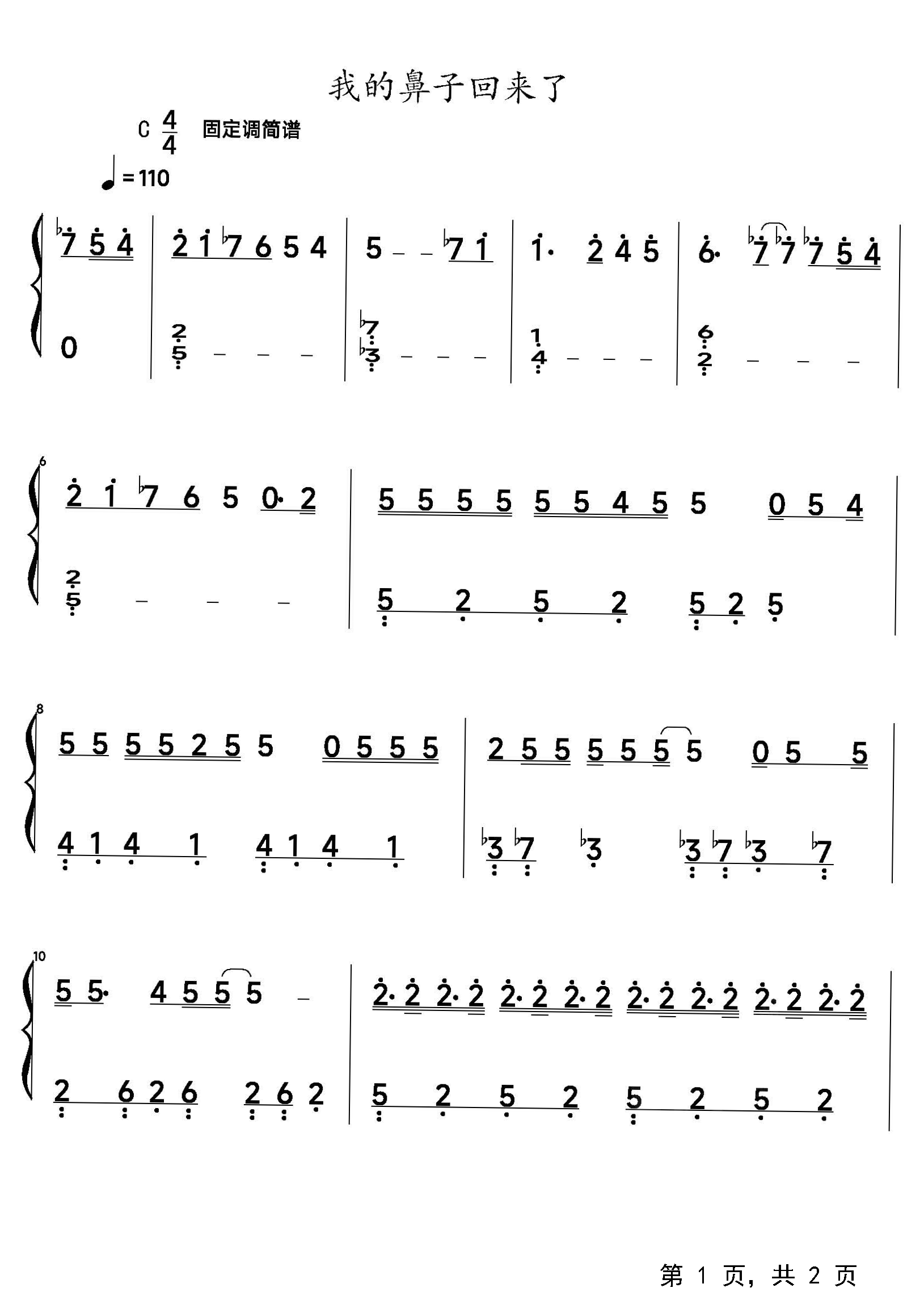作品分类:流行钢琴简谱