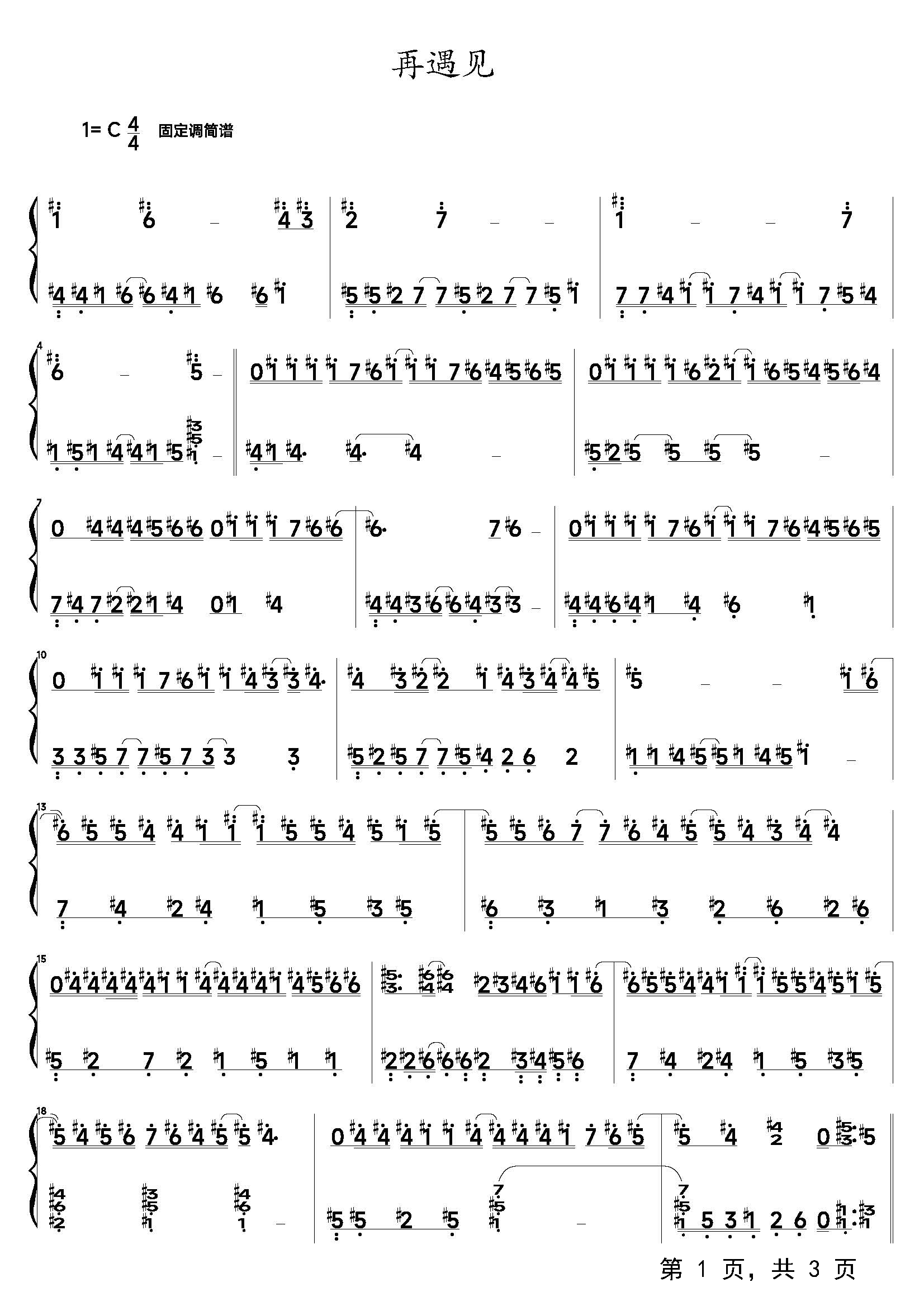 作品分类:流行钢琴简谱