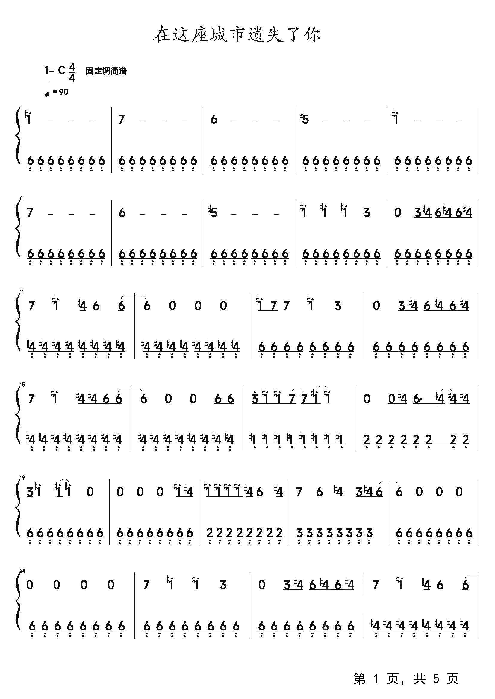 作品分类:流行钢琴简谱