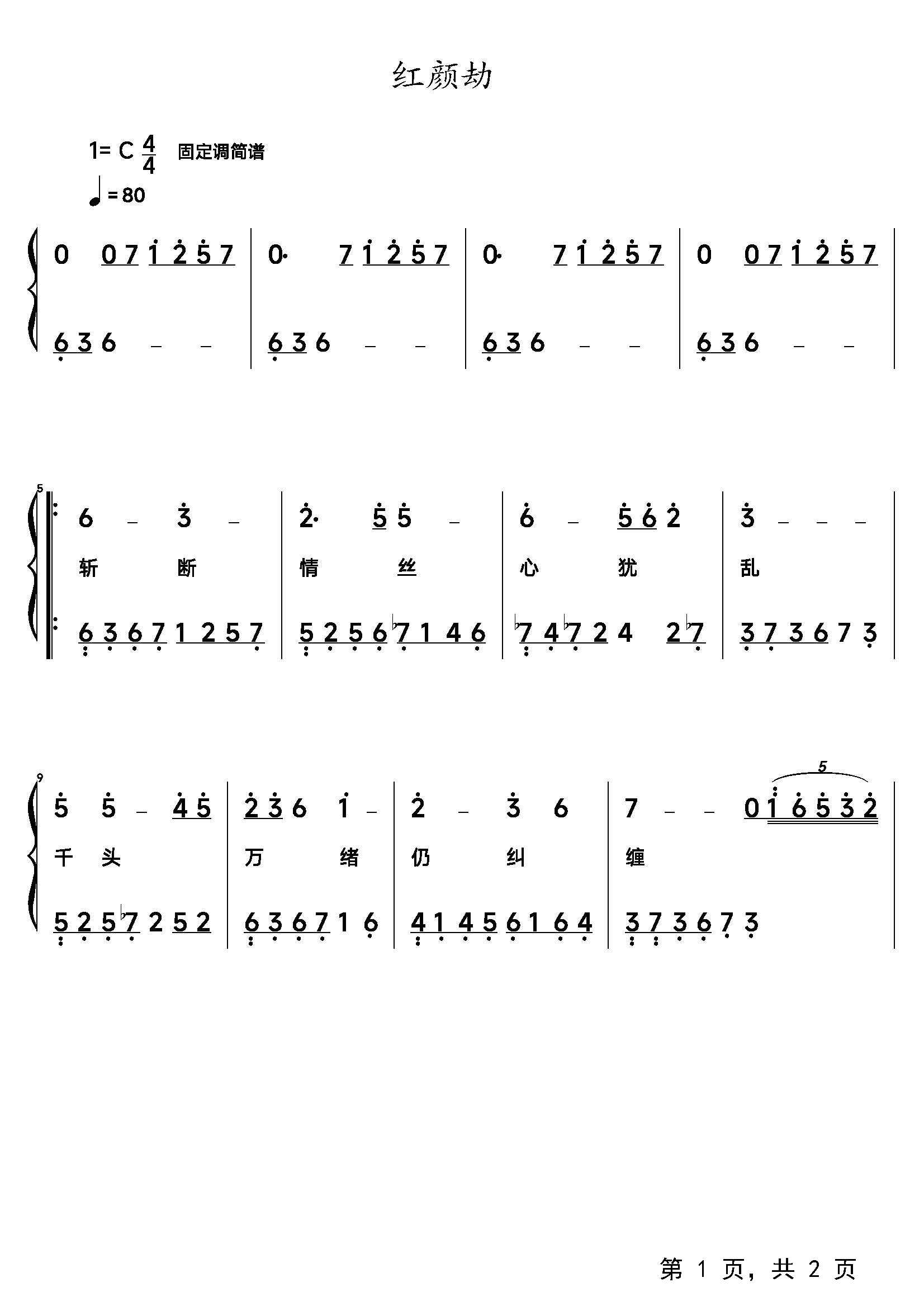 作品分类:流行钢琴简谱