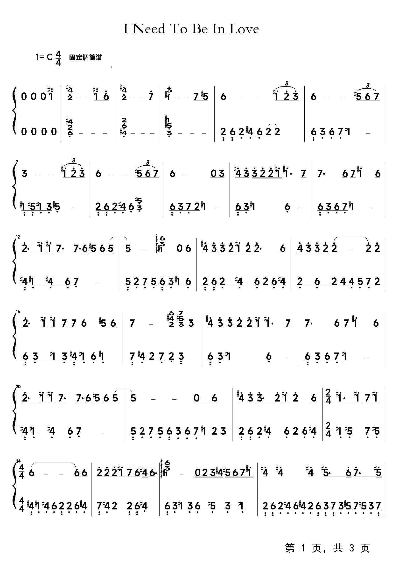作品分类:流行钢琴简谱
