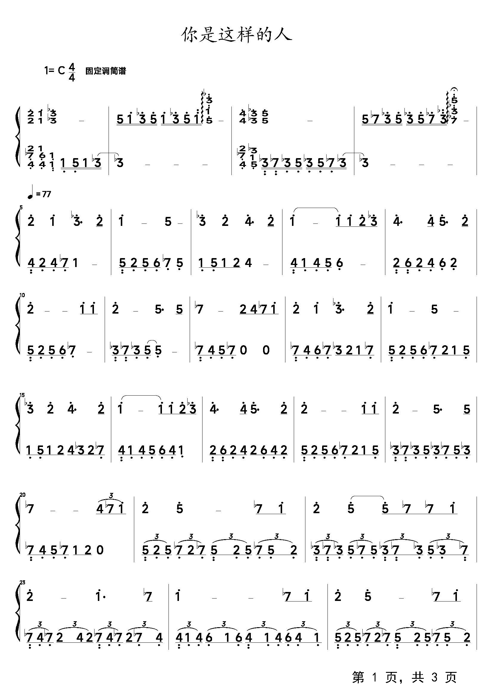 你是这样的人钢琴谱-刘欢-C调-流行钢琴简谱