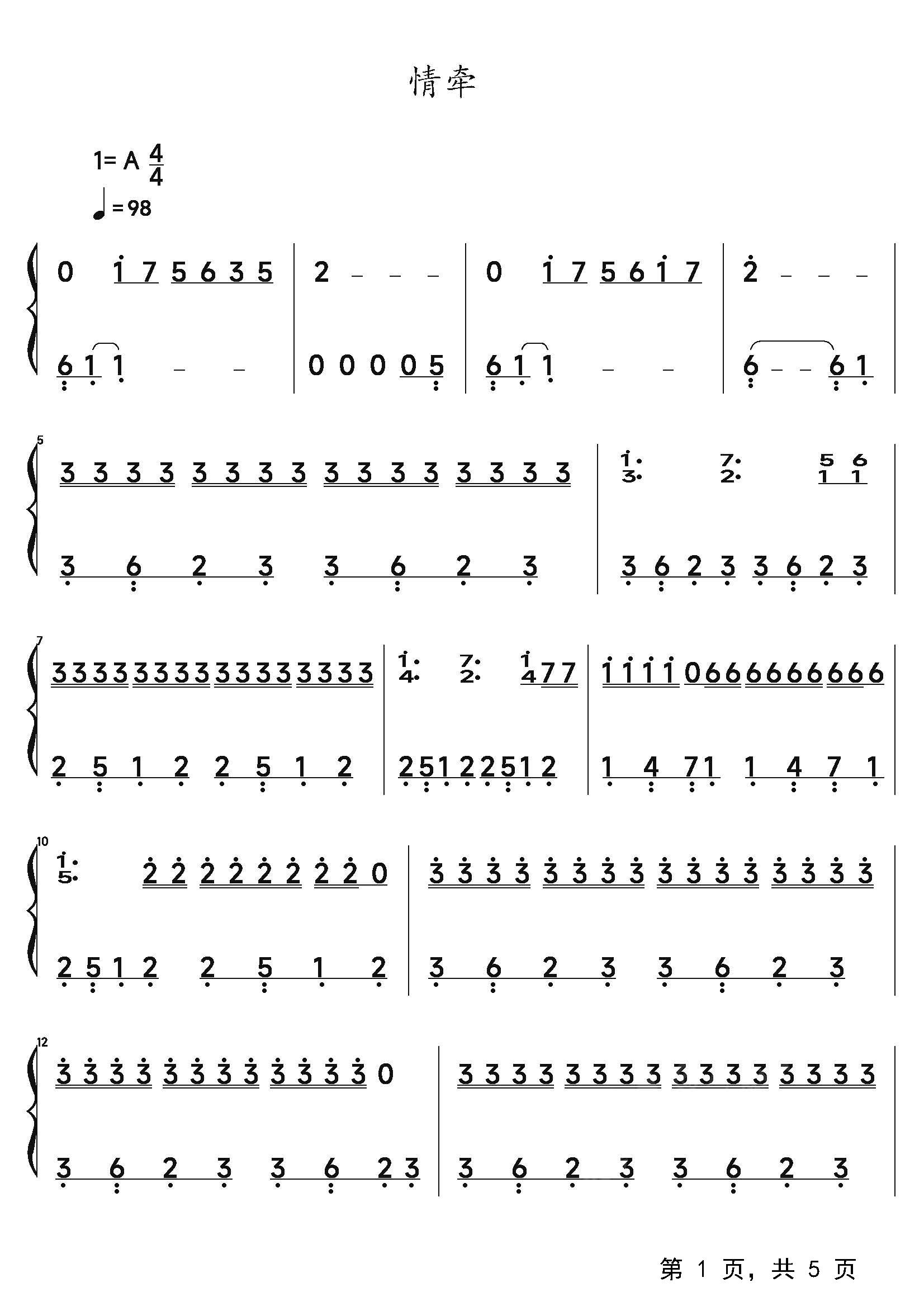 作品分类:流行钢琴简谱