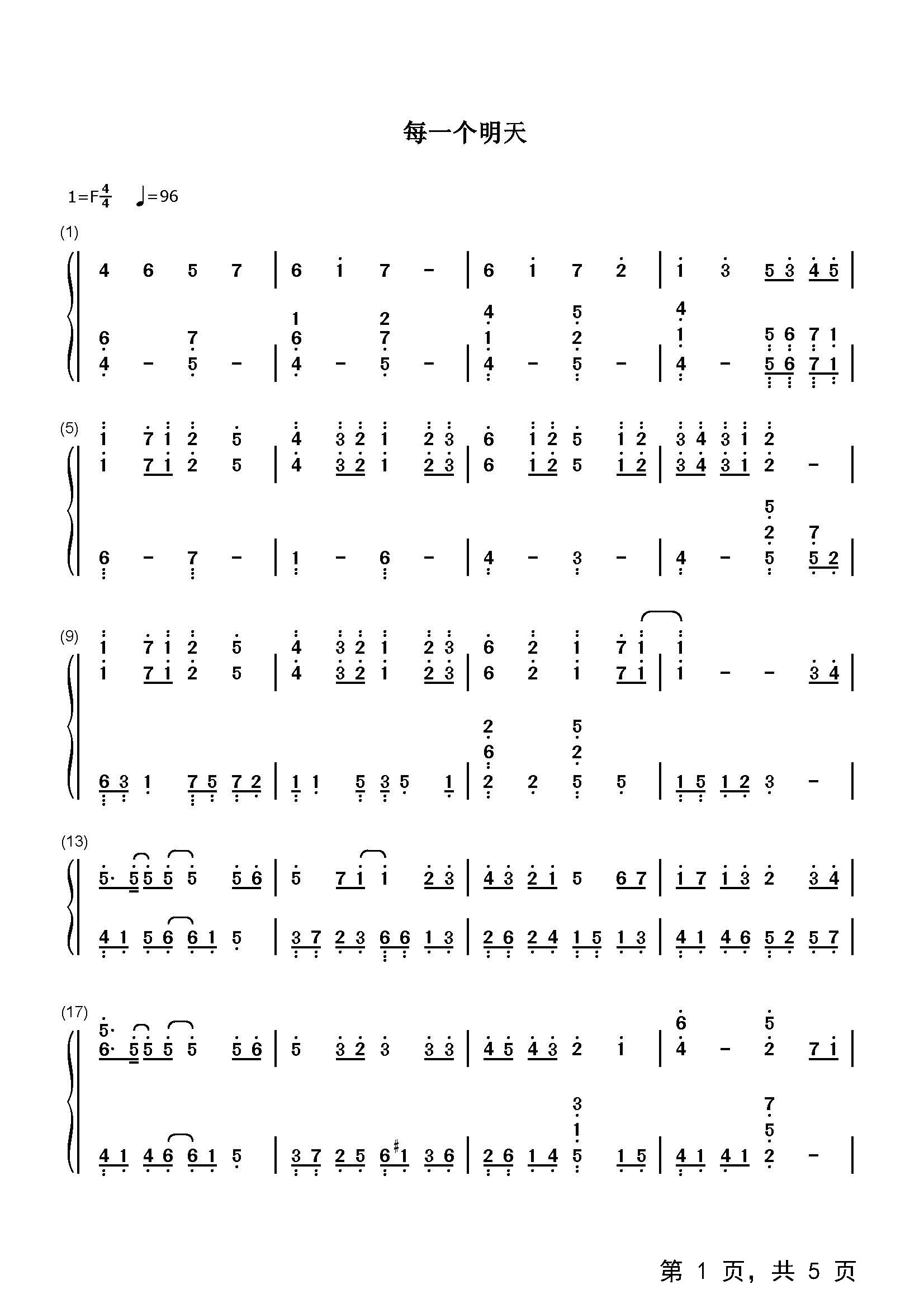 作品分类:流行钢琴简谱