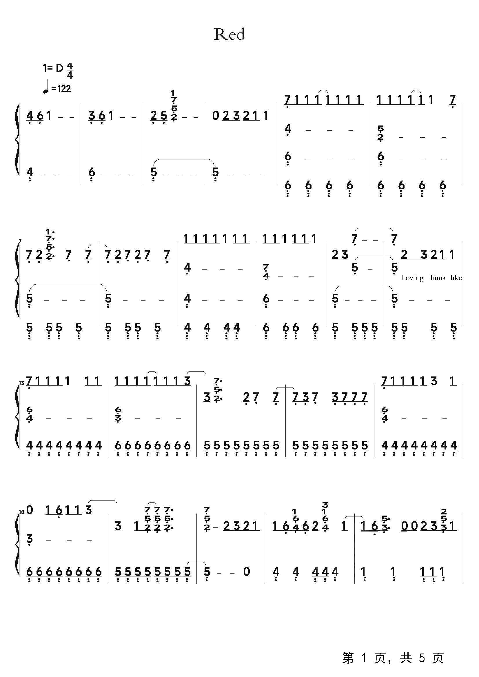 作品分类:流行钢琴简谱