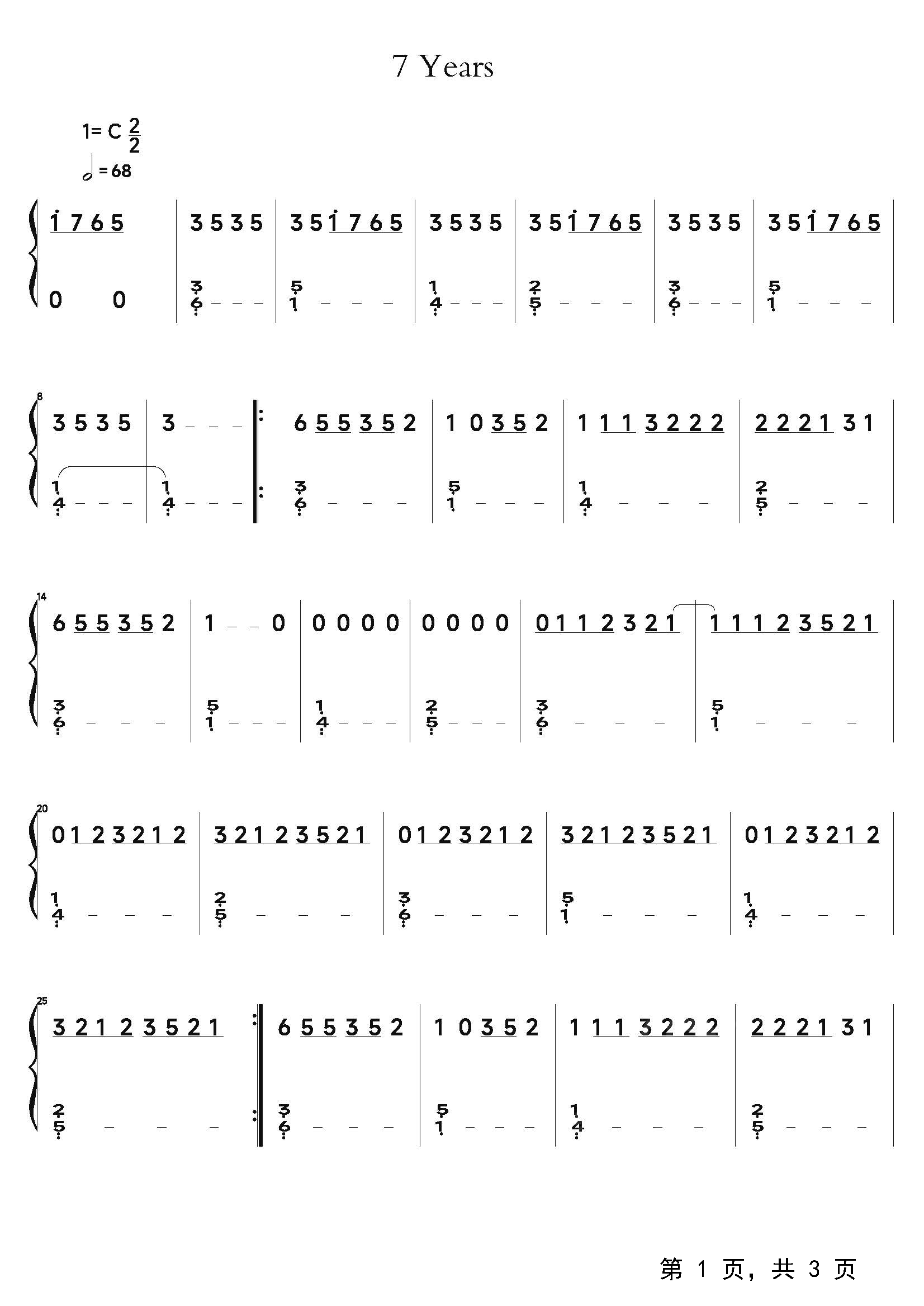 作品分类:流行钢琴简谱