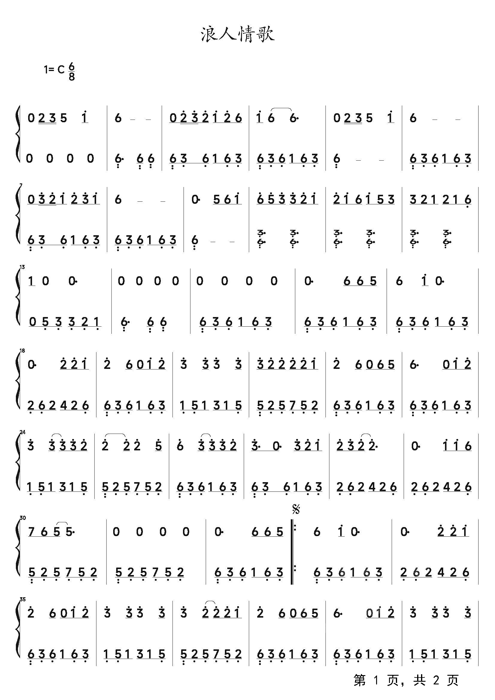 作品分类:流行钢琴简谱