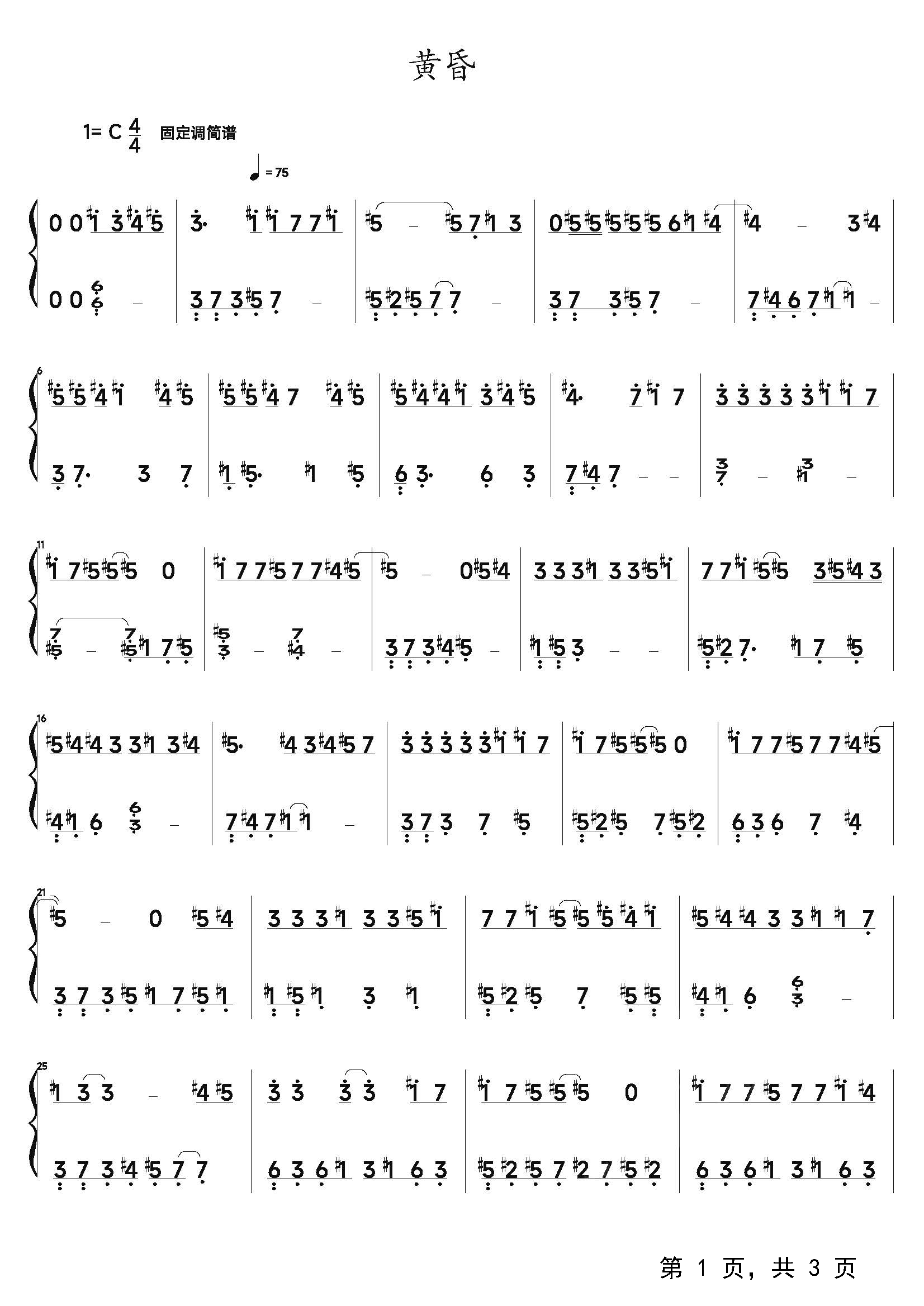 作品分类:流行钢琴简谱