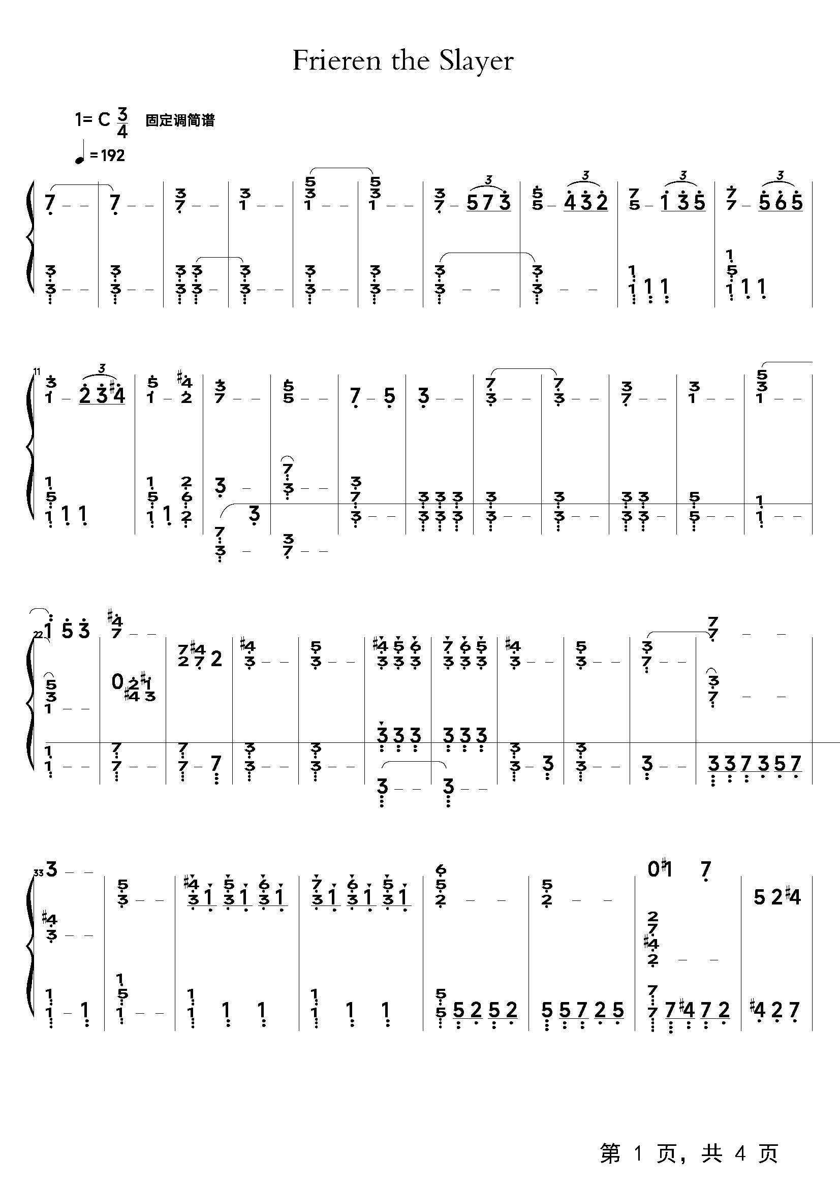 作品分类:流行钢琴简谱