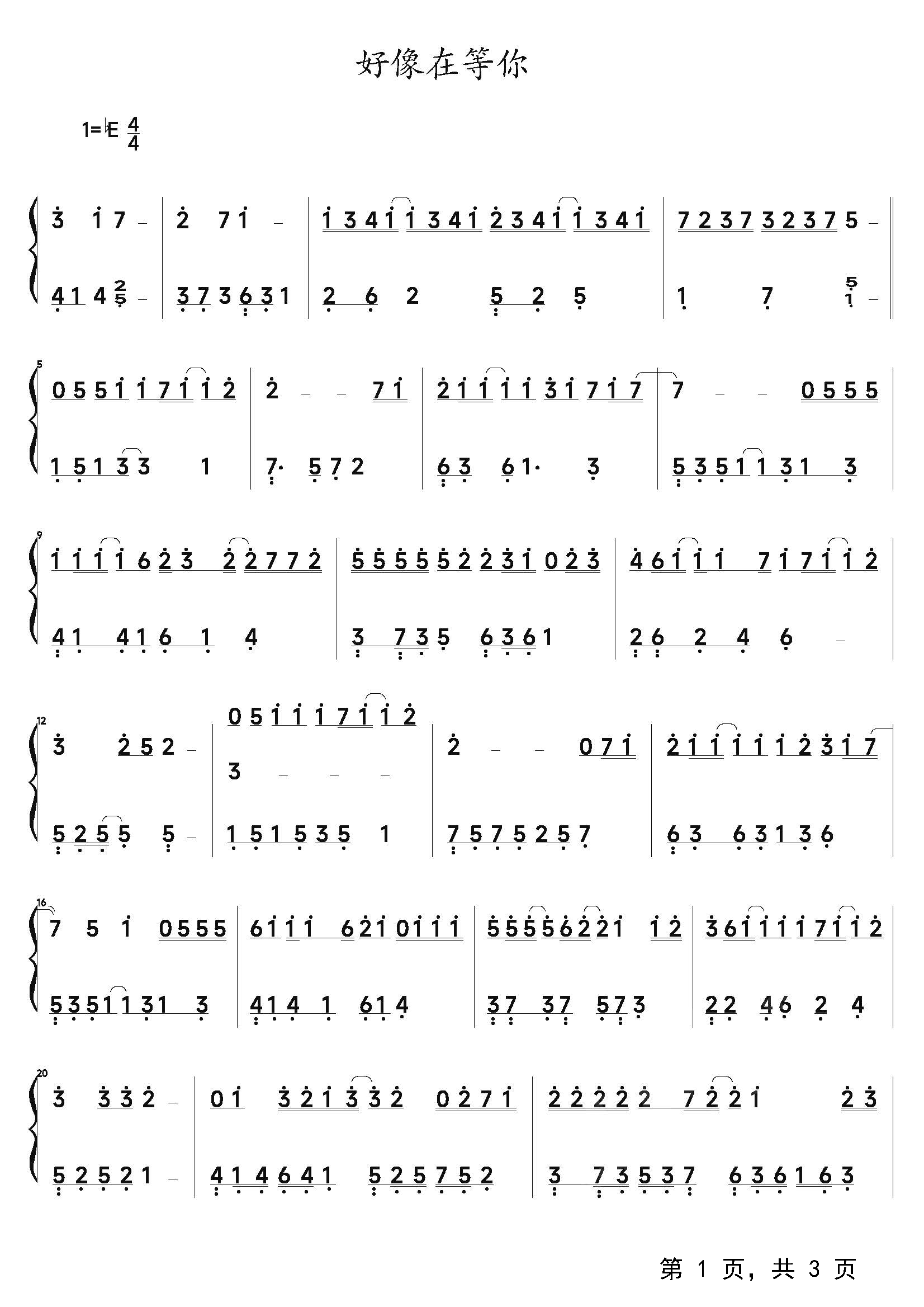 作品分类:流行钢琴简谱