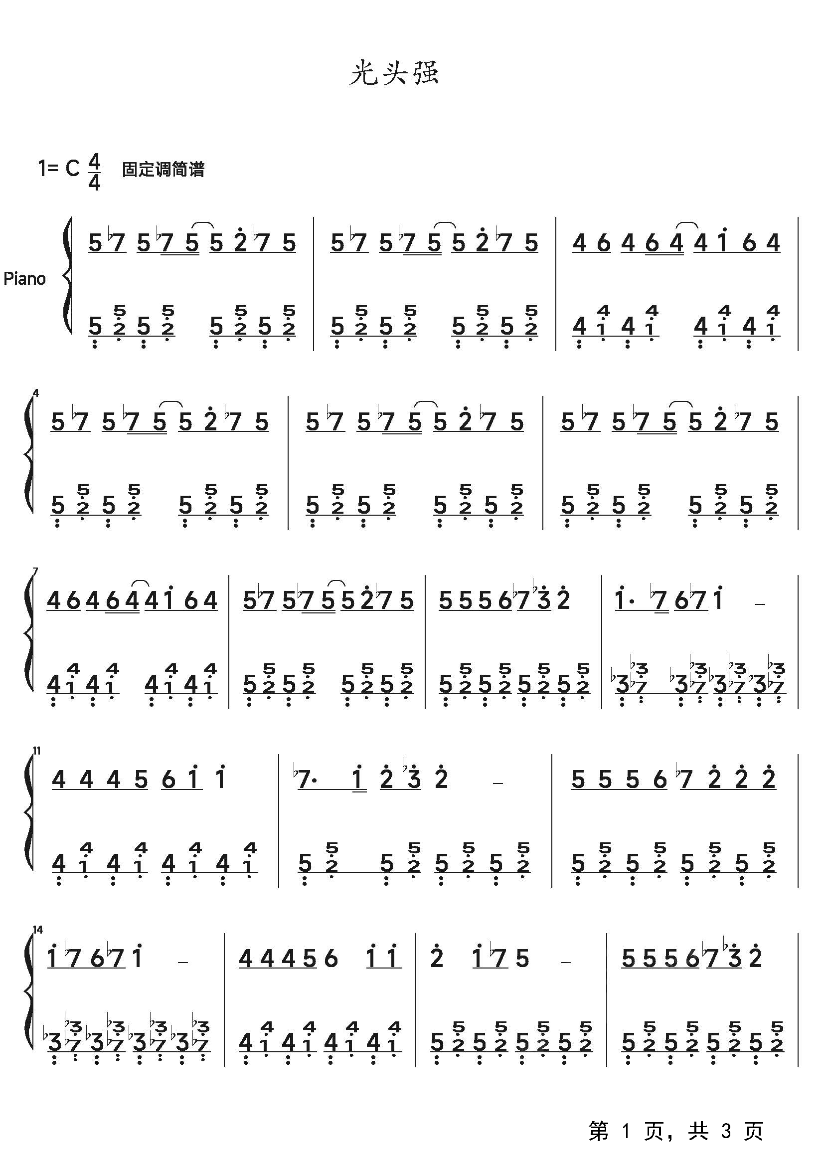 作品分类:流行钢琴简谱