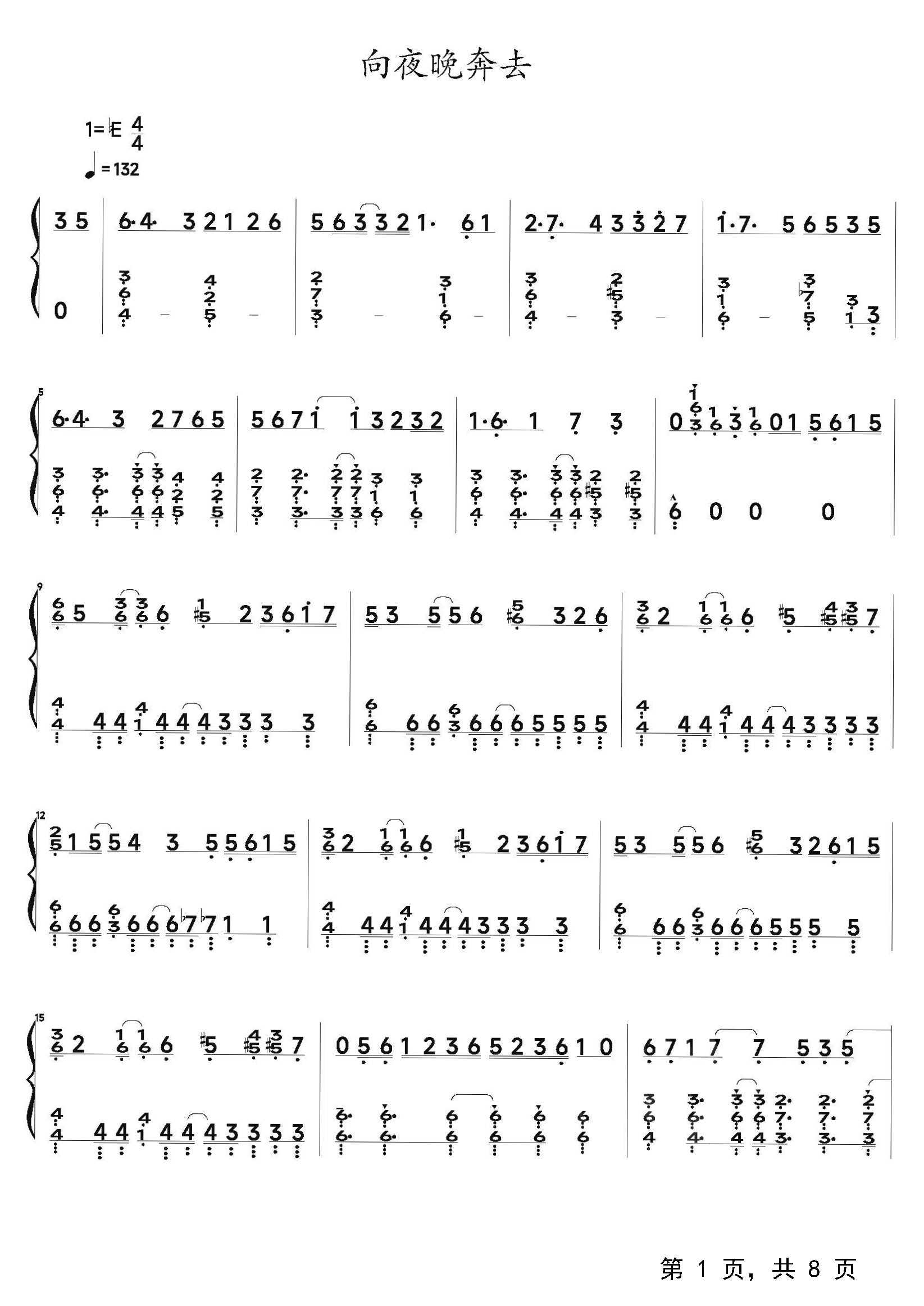 向夜晚奔去钢琴谱