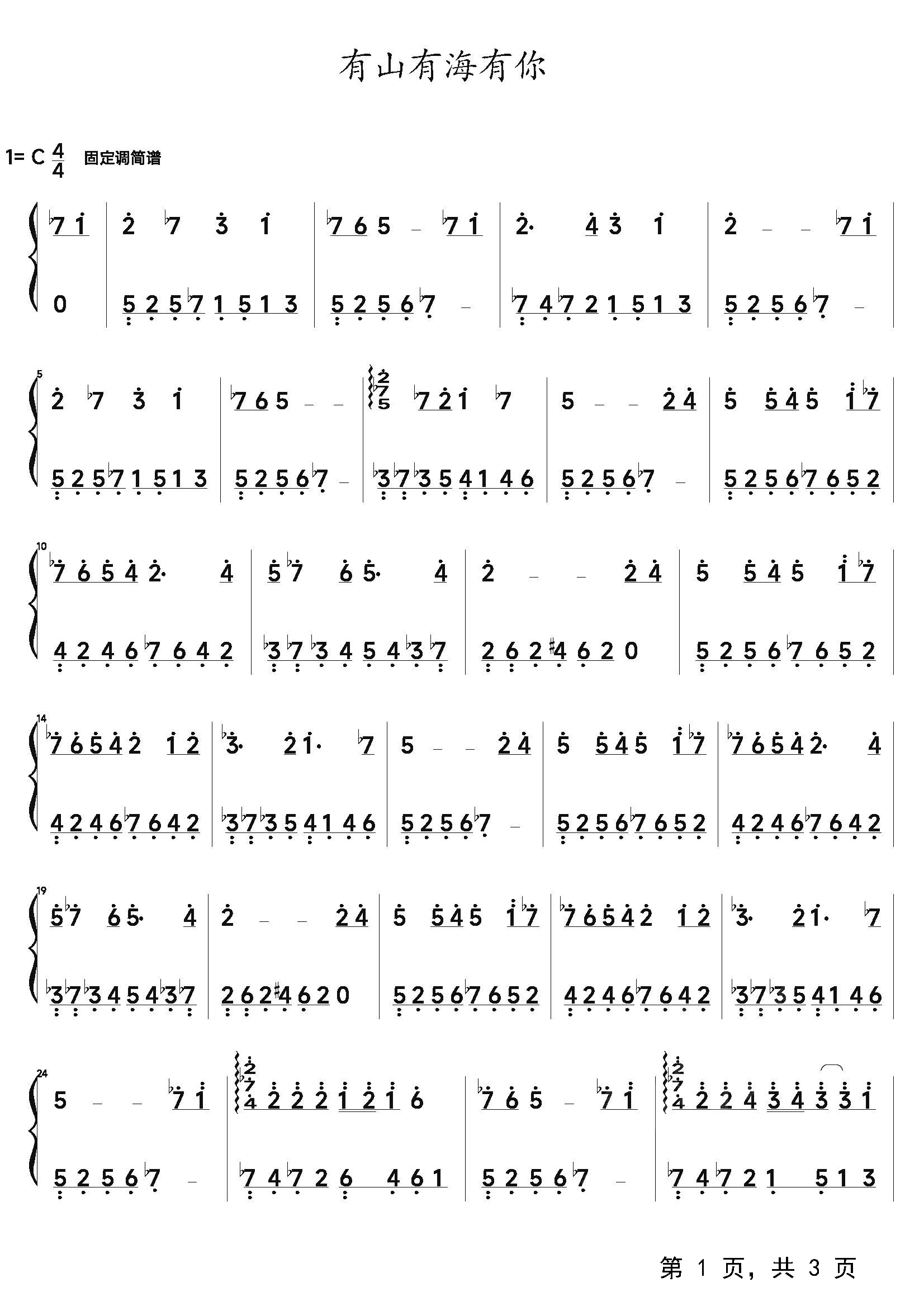 作品分类:流行钢琴简谱