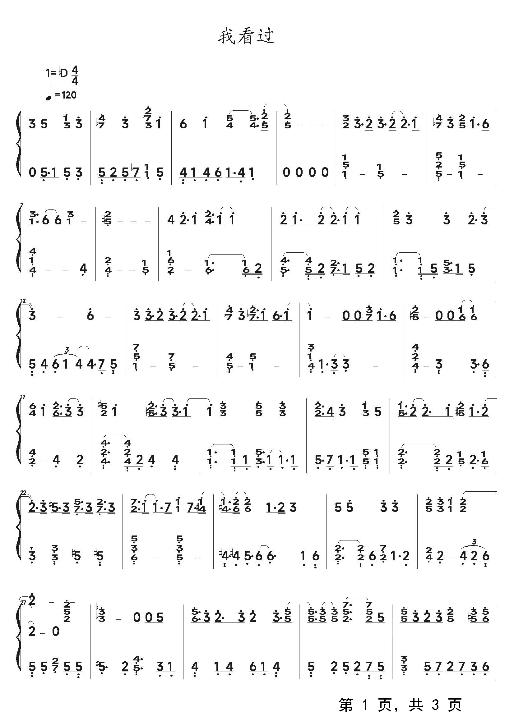作品分类:流行钢琴简谱