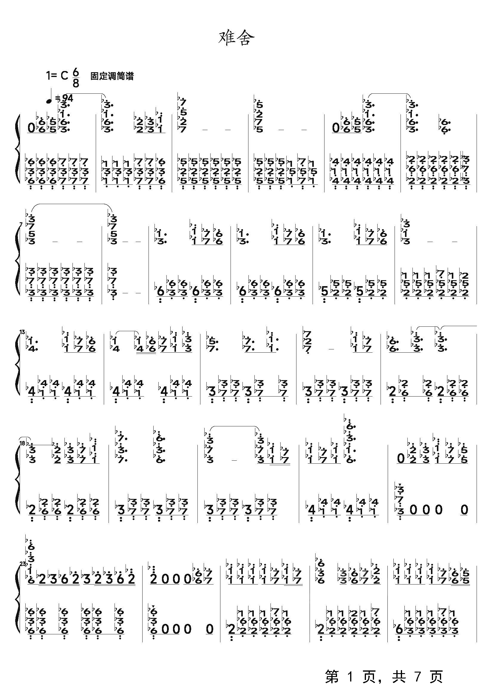 作品分类:流行钢琴简谱
