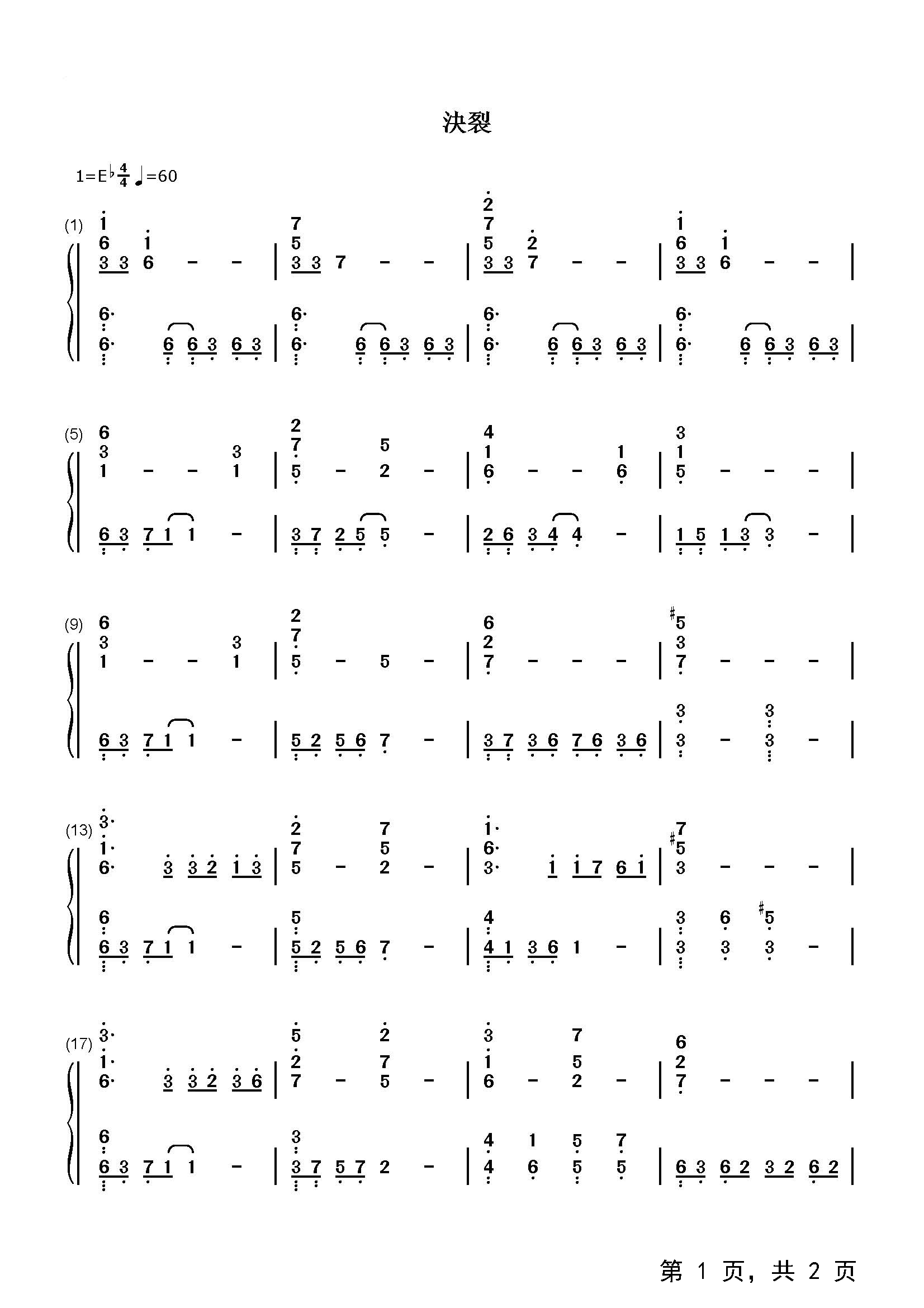 作品分类:流行钢琴简谱