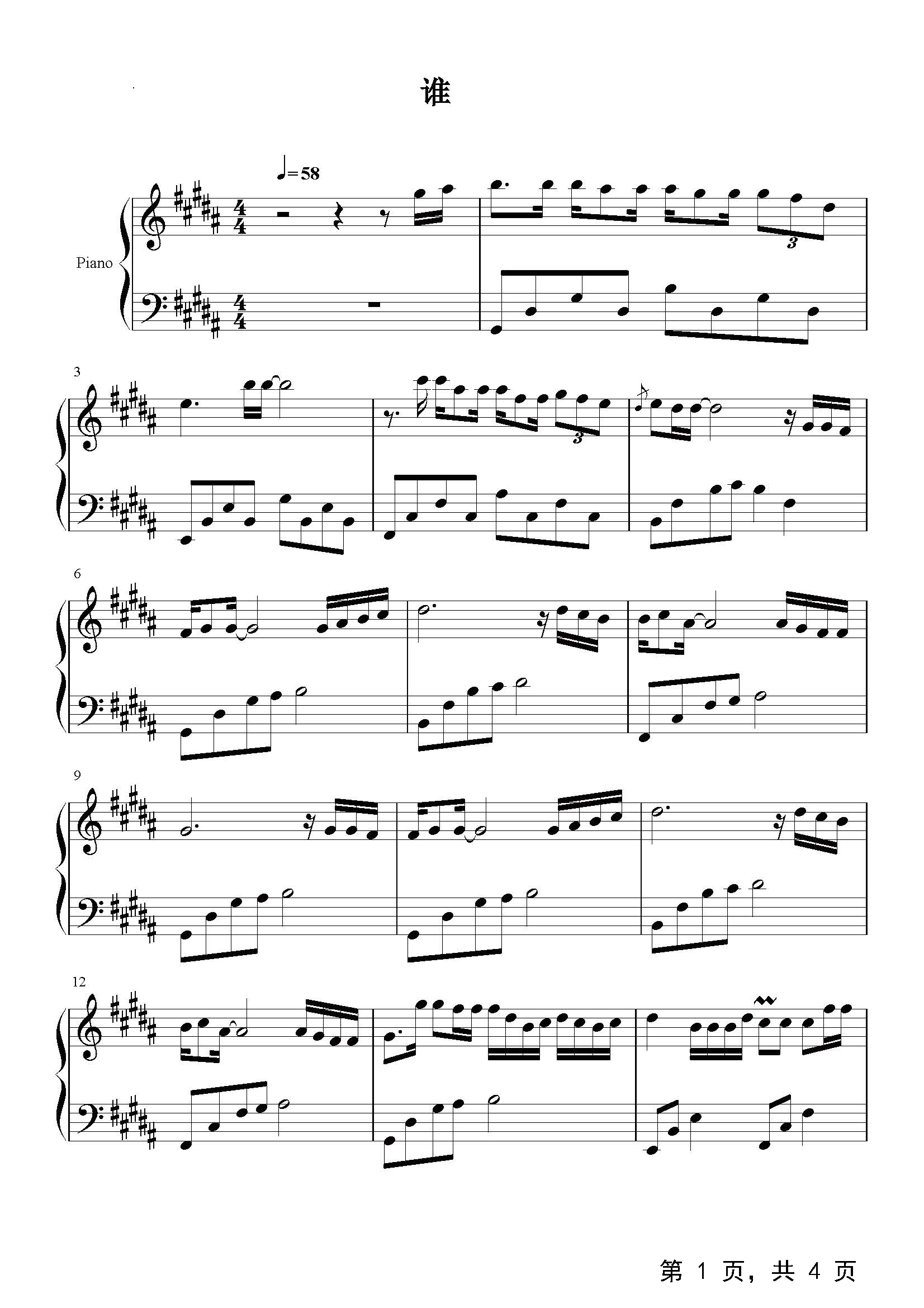 作品分类:流行钢琴简谱