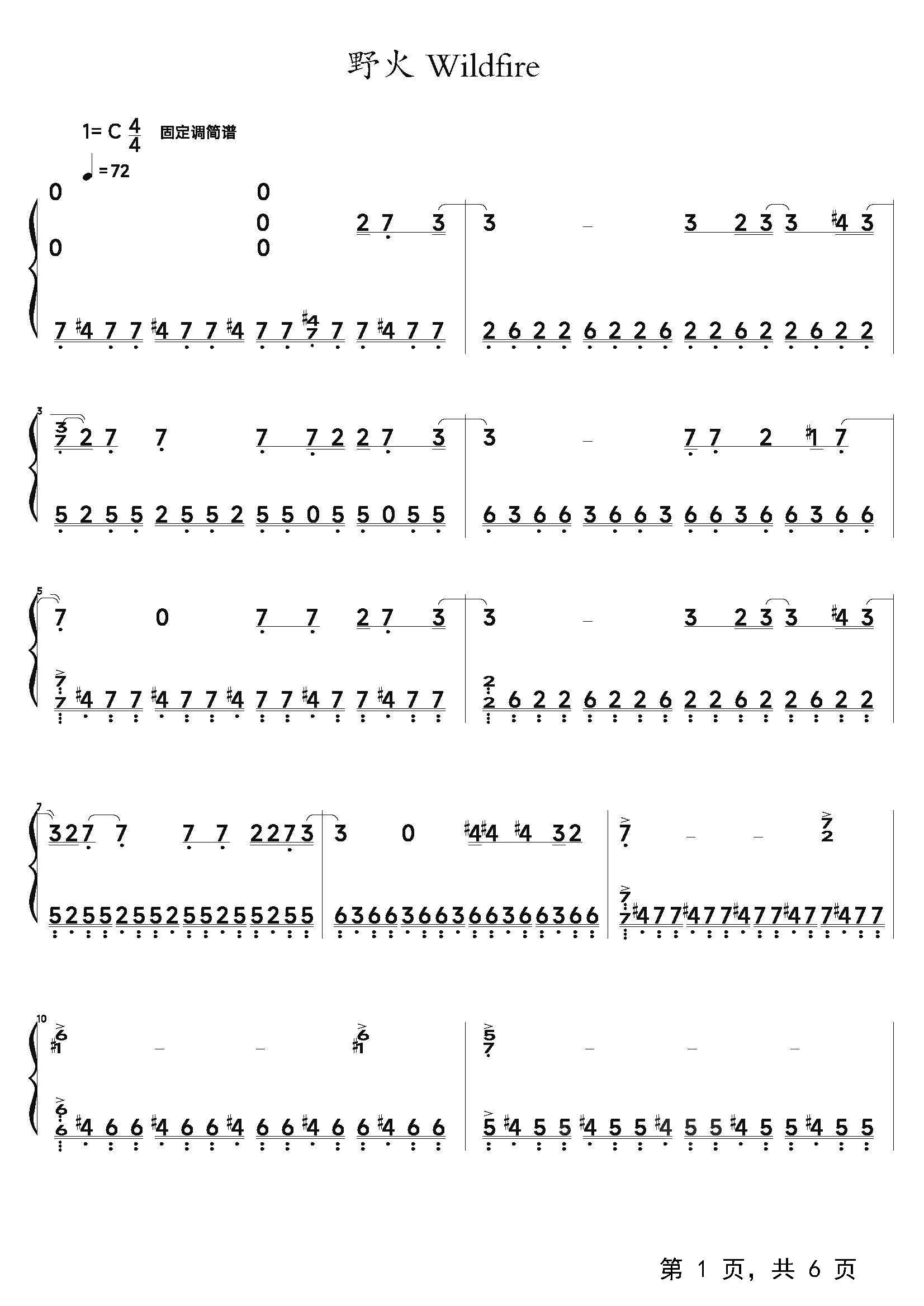 作品分类:流行钢琴简谱
