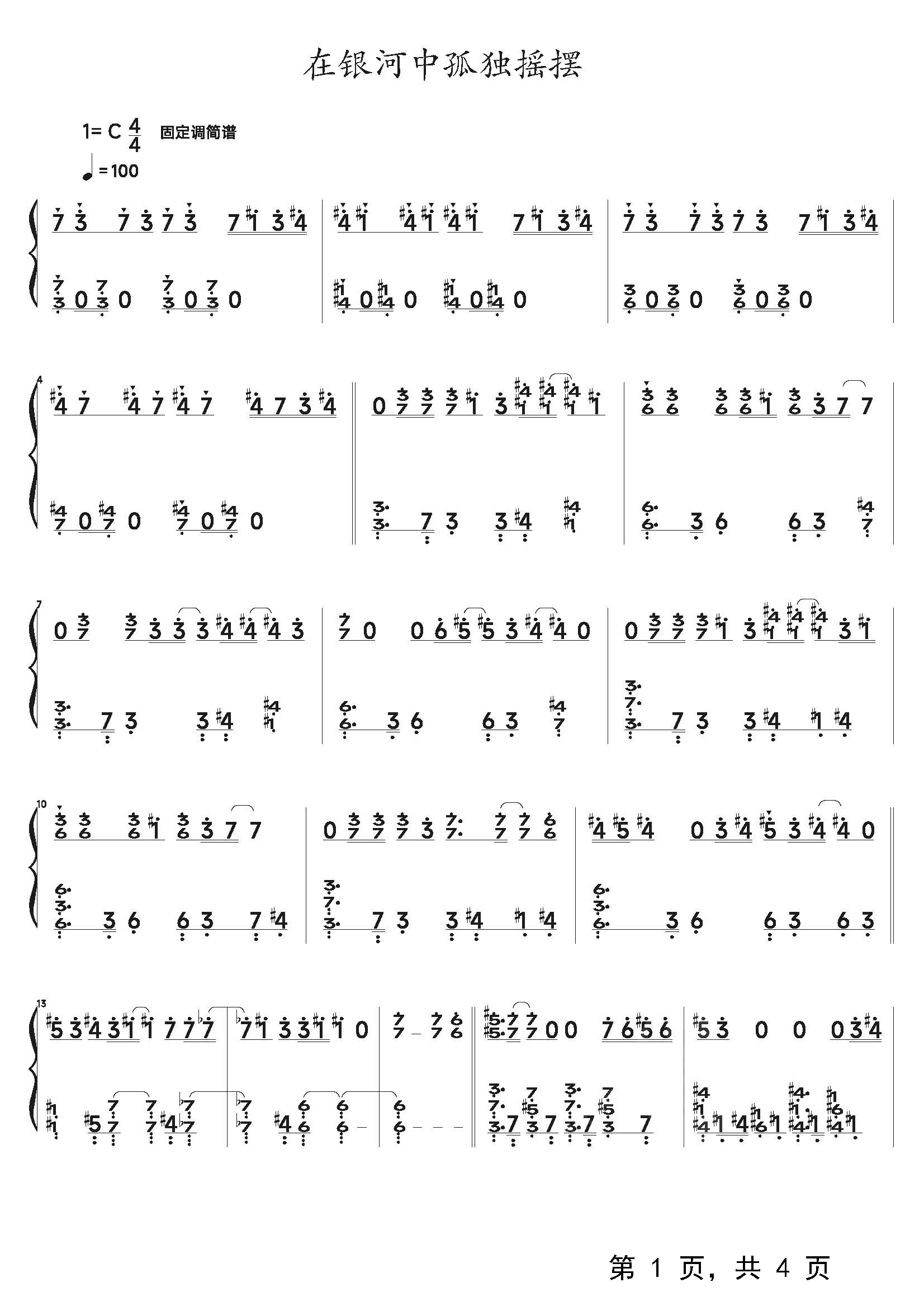 作品分类:流行钢琴简谱