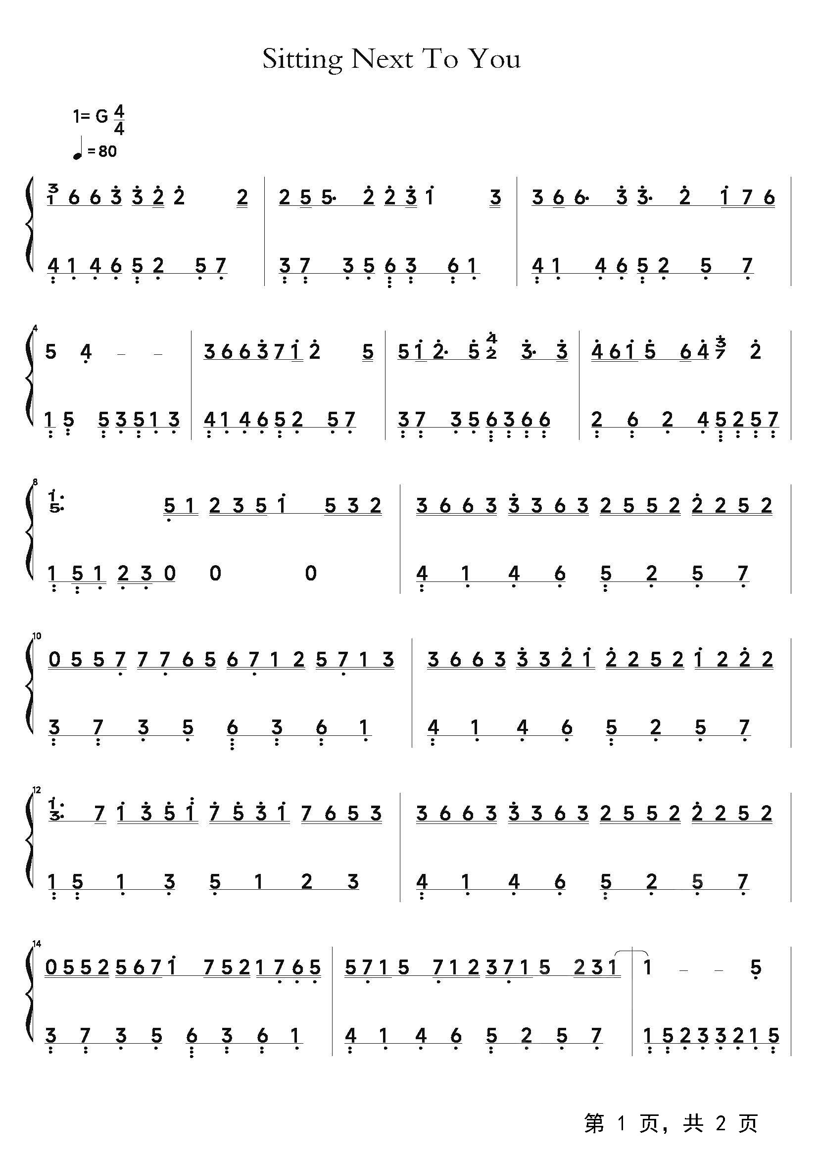 作品分类:流行钢琴简谱