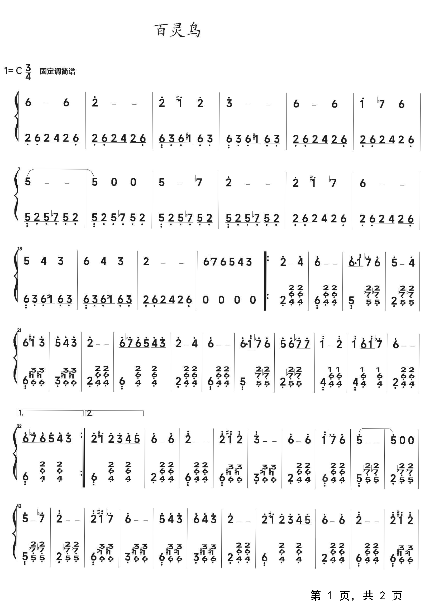 作品分类:流行钢琴简谱
