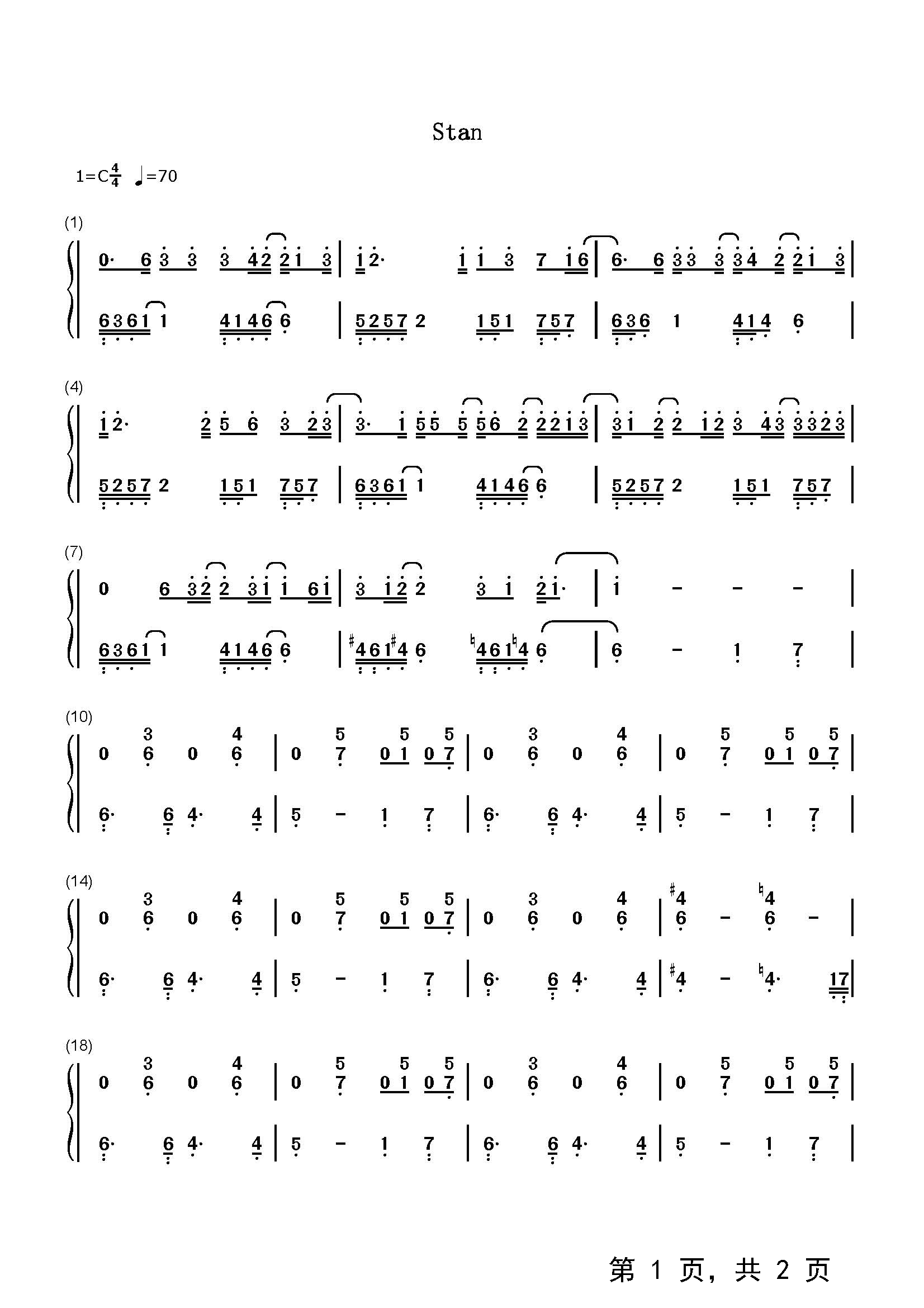 《Stan》是美国说唱歌手埃米纳姆(Eminem)与英国女歌手蒂朵(Dido)演唱的一首说唱歌曲,由埃米纳姆、蒂朵和保罗·哈蒙共同谱写,收录在埃米纳姆第三张录音室专辑《The Marshall Mathers LP》中,于2000年12月9日由Aftermath娱乐、新视镜唱片、Shady唱片共同发行。2005年12月6日,埃米纳姆与艾尔顿·约翰合作的格莱美现场版被收录在埃米纳姆的精选集《Curtain Call: The Hits》中发行 。《Stan》在英国、澳大利亚、芬兰等十一个国家的排行榜中获得冠军位置。在滚石杂志评出的“历史上最伟大的500首歌曲”中名列第290位 。2001年2月21日,艾米纳姆与艾尔顿·约翰在格莱美典礼演出《Stan》,《公告牌》将其评最震撼的十大格莱美现场,排名第二 。2017年,单词“stan”作为名词和动词被《牛津英语词典》收录 。