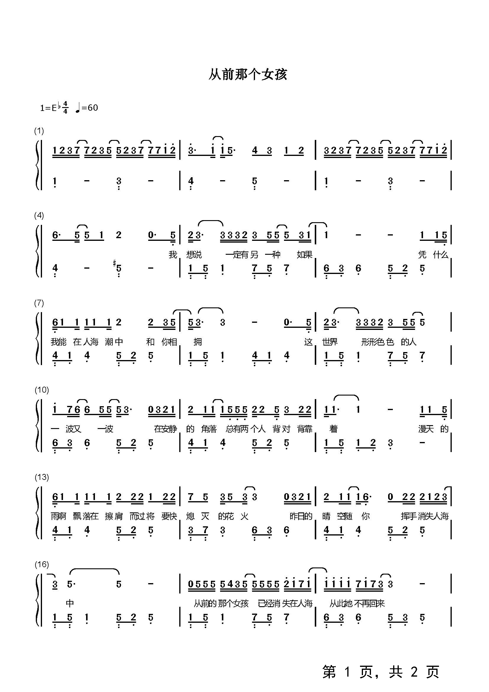 作品分类:流行钢琴简谱