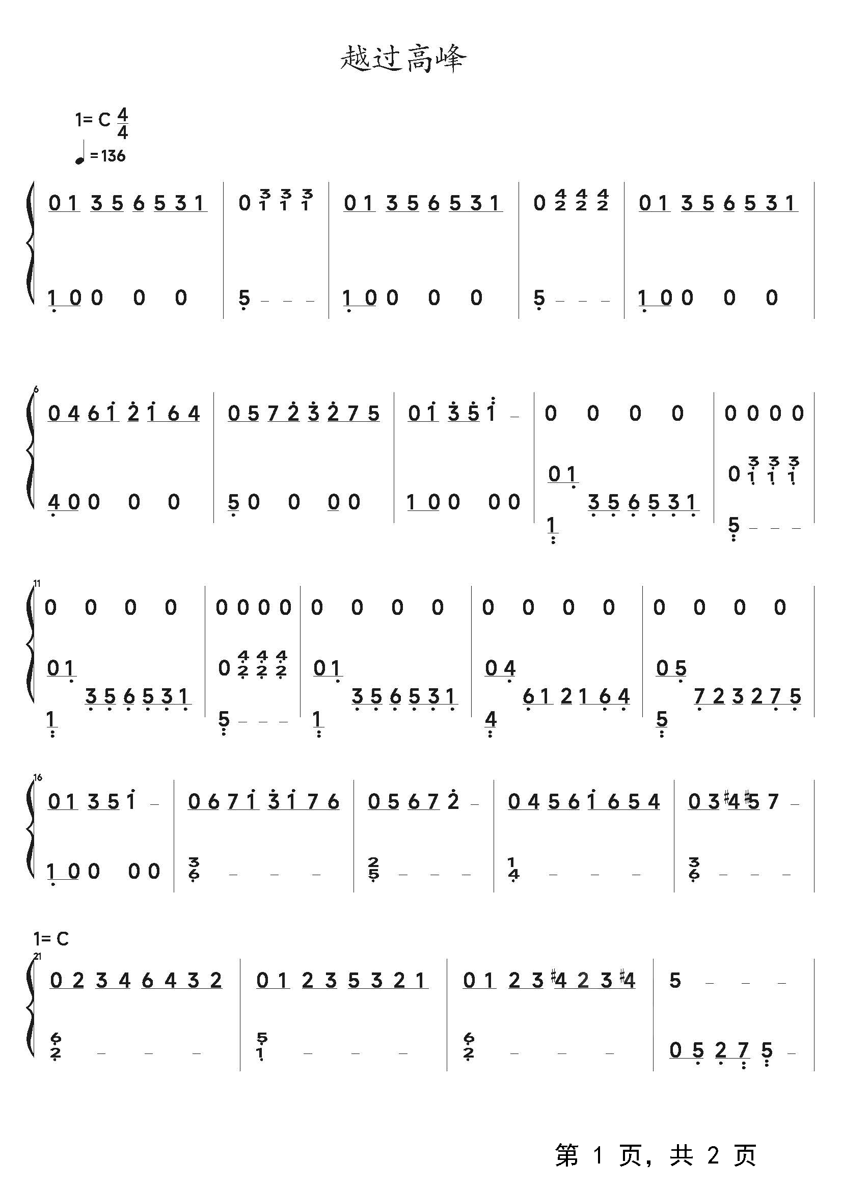 作品分类:流行钢琴简谱