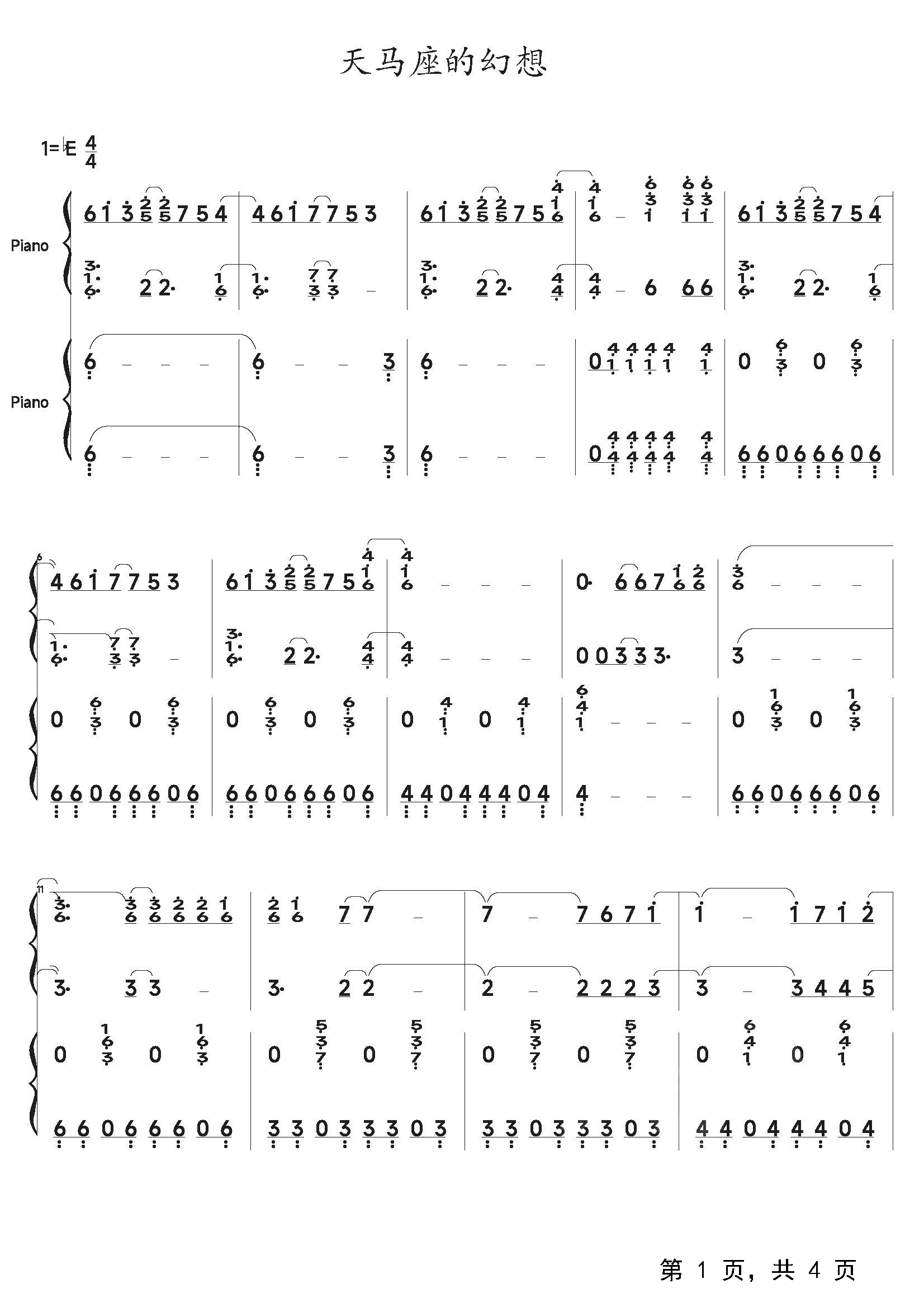 作品分类:流行钢琴简谱