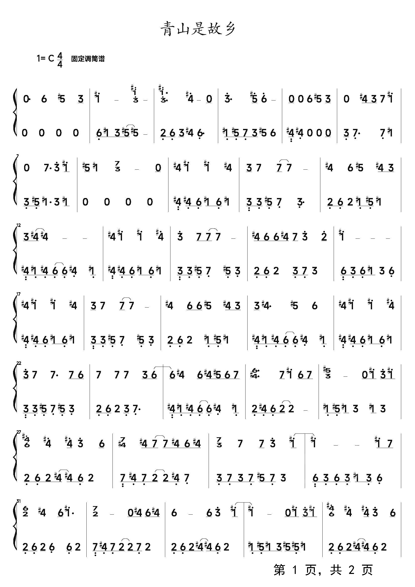 作品分类:流行钢琴简谱