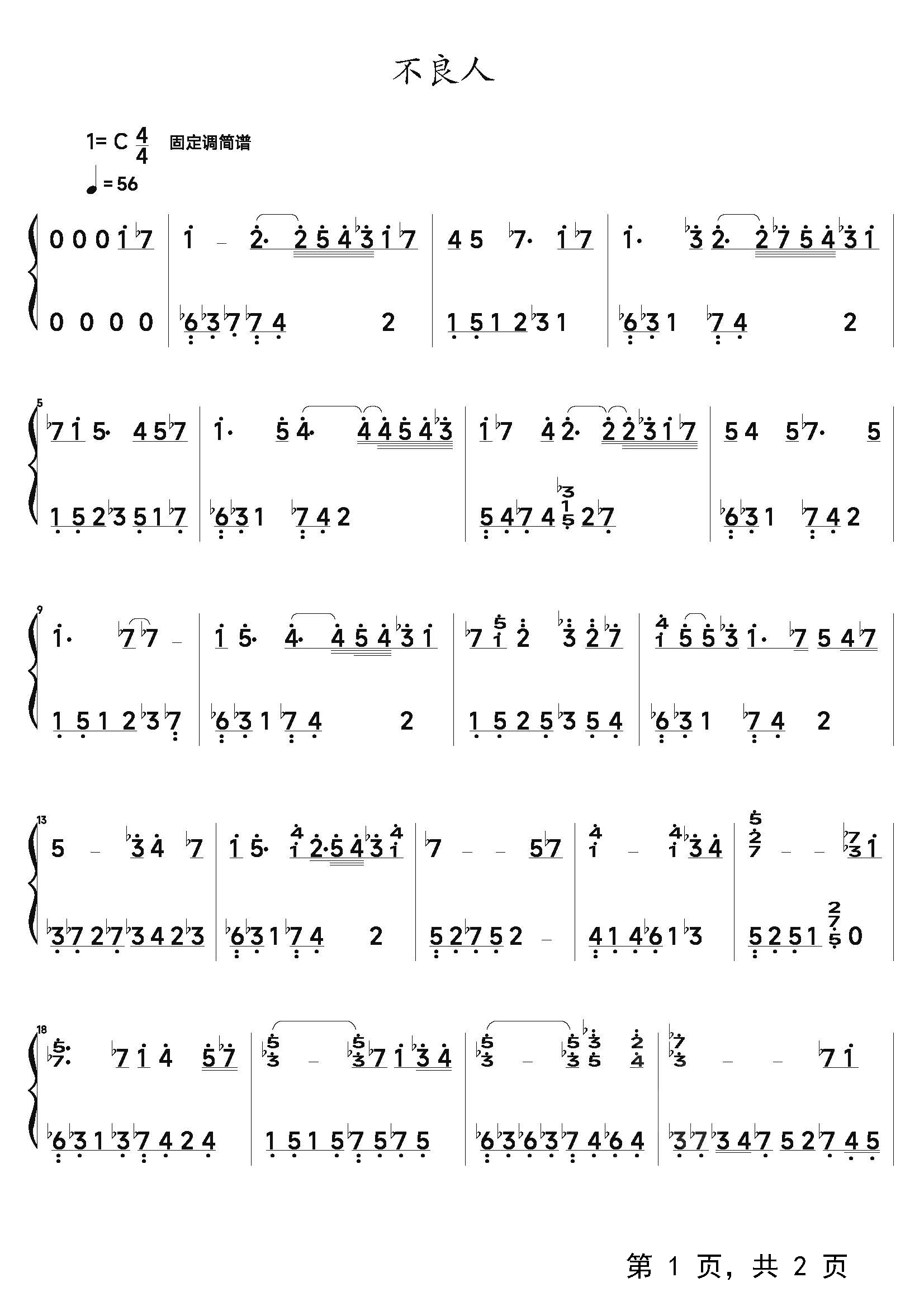 不良人钢琴谱-毛亮-C调-流行钢琴简谱