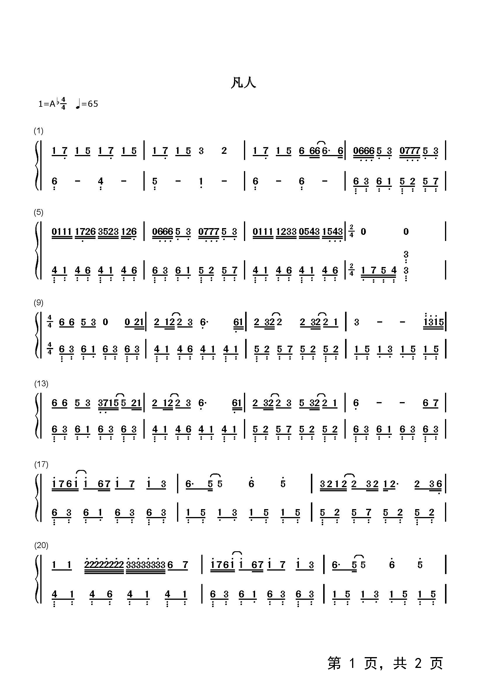 作品分类:流行钢琴简谱