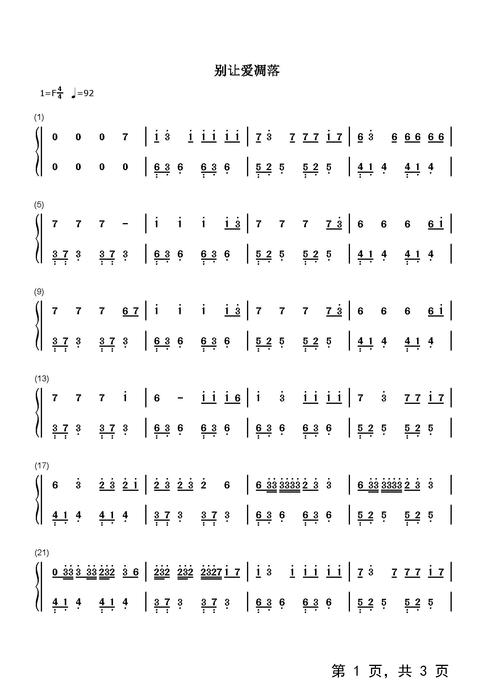 作品分类:流行钢琴简谱