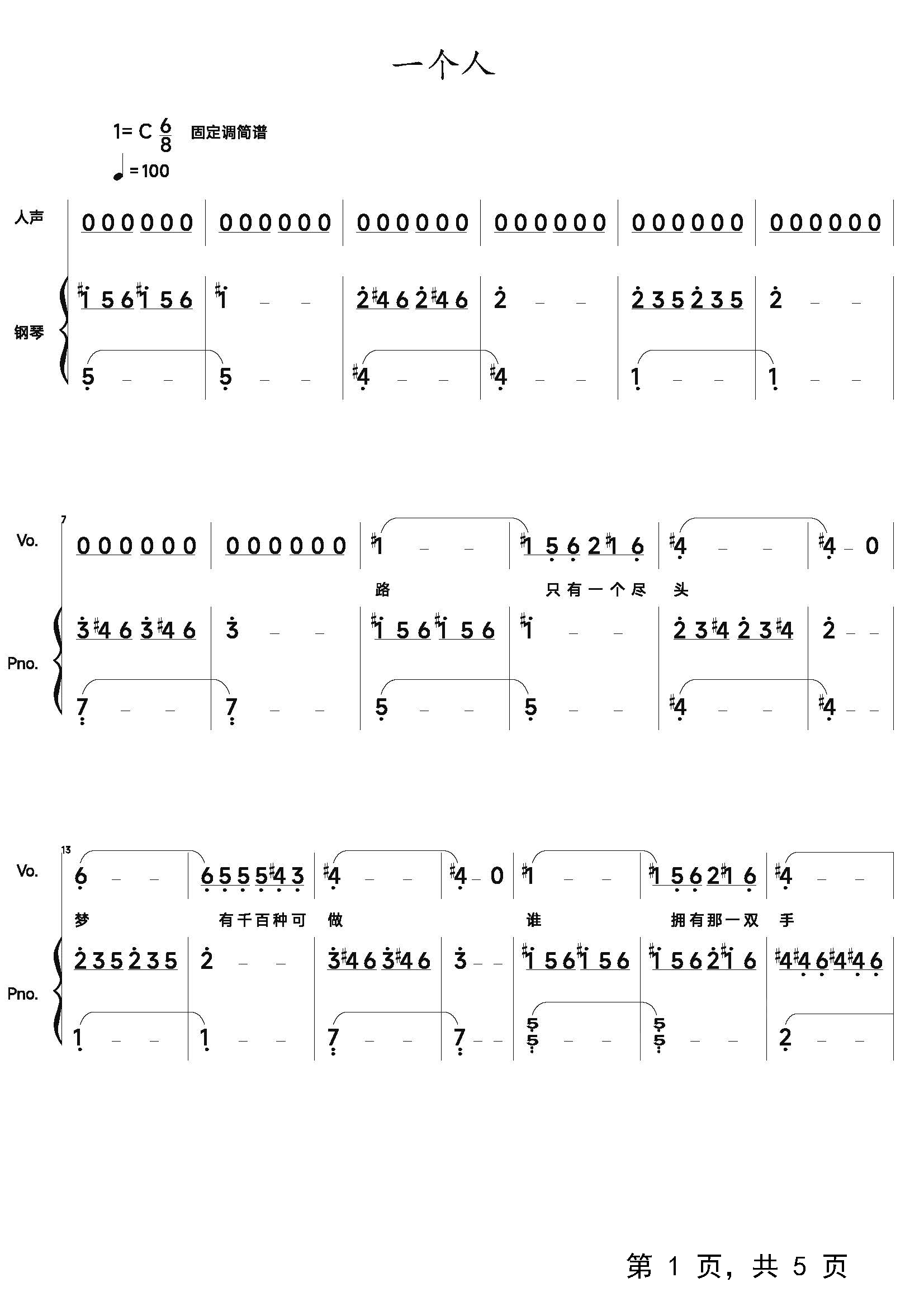 作品分类:流行钢琴简谱