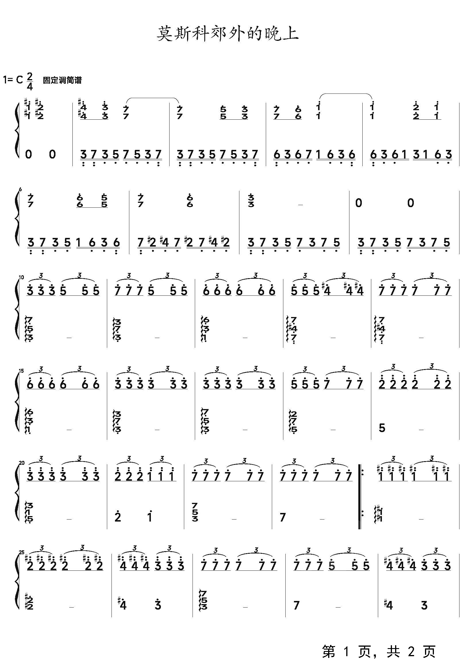 作品分类:流行钢琴简谱