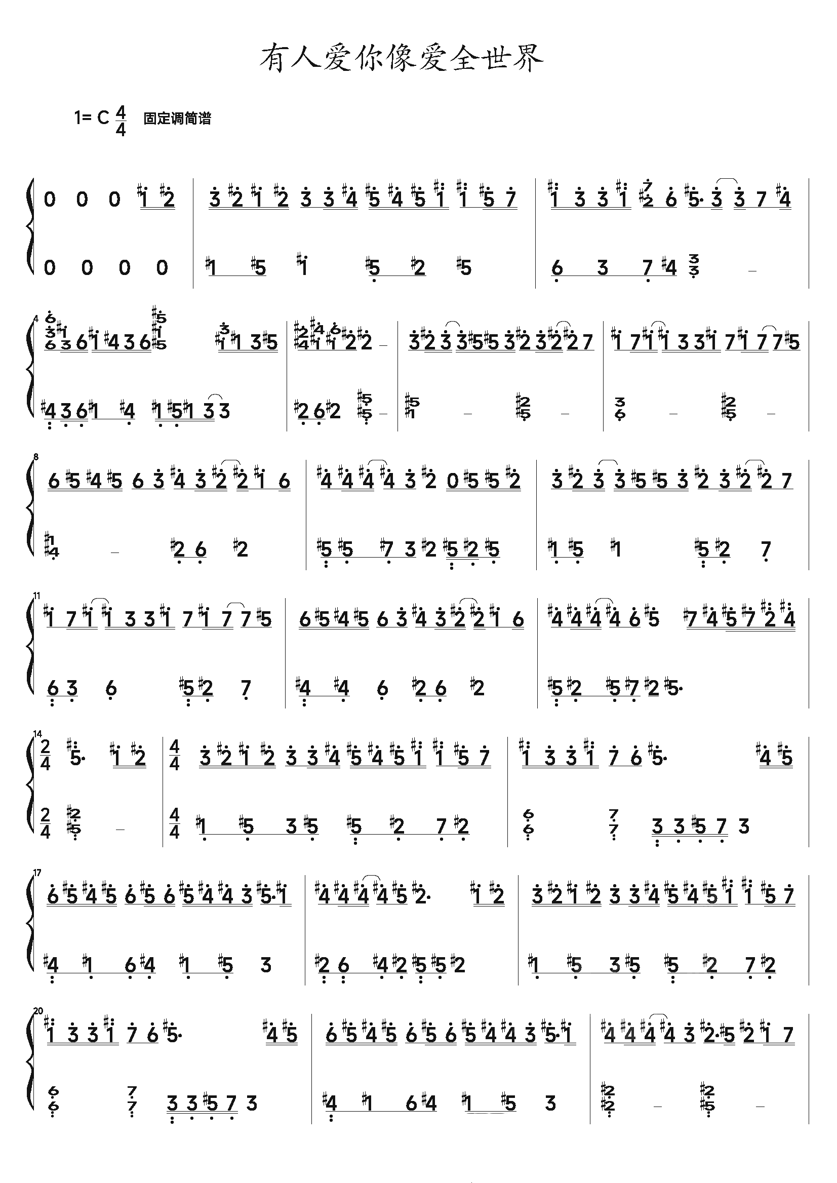 作品分类:流行钢琴简谱