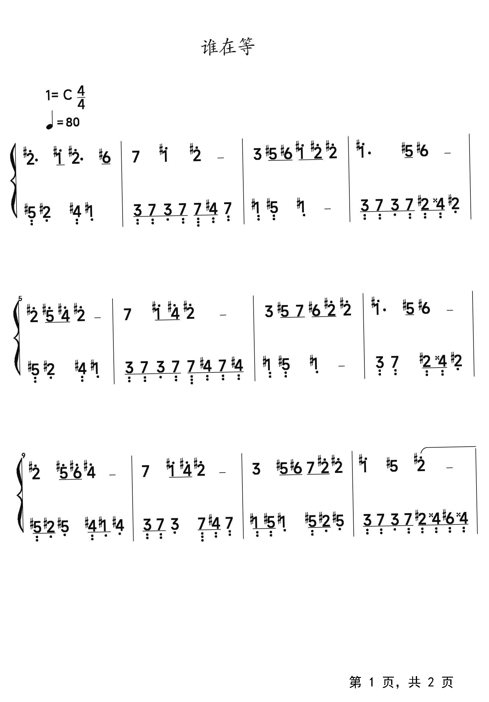 作品分类:流行钢琴简谱