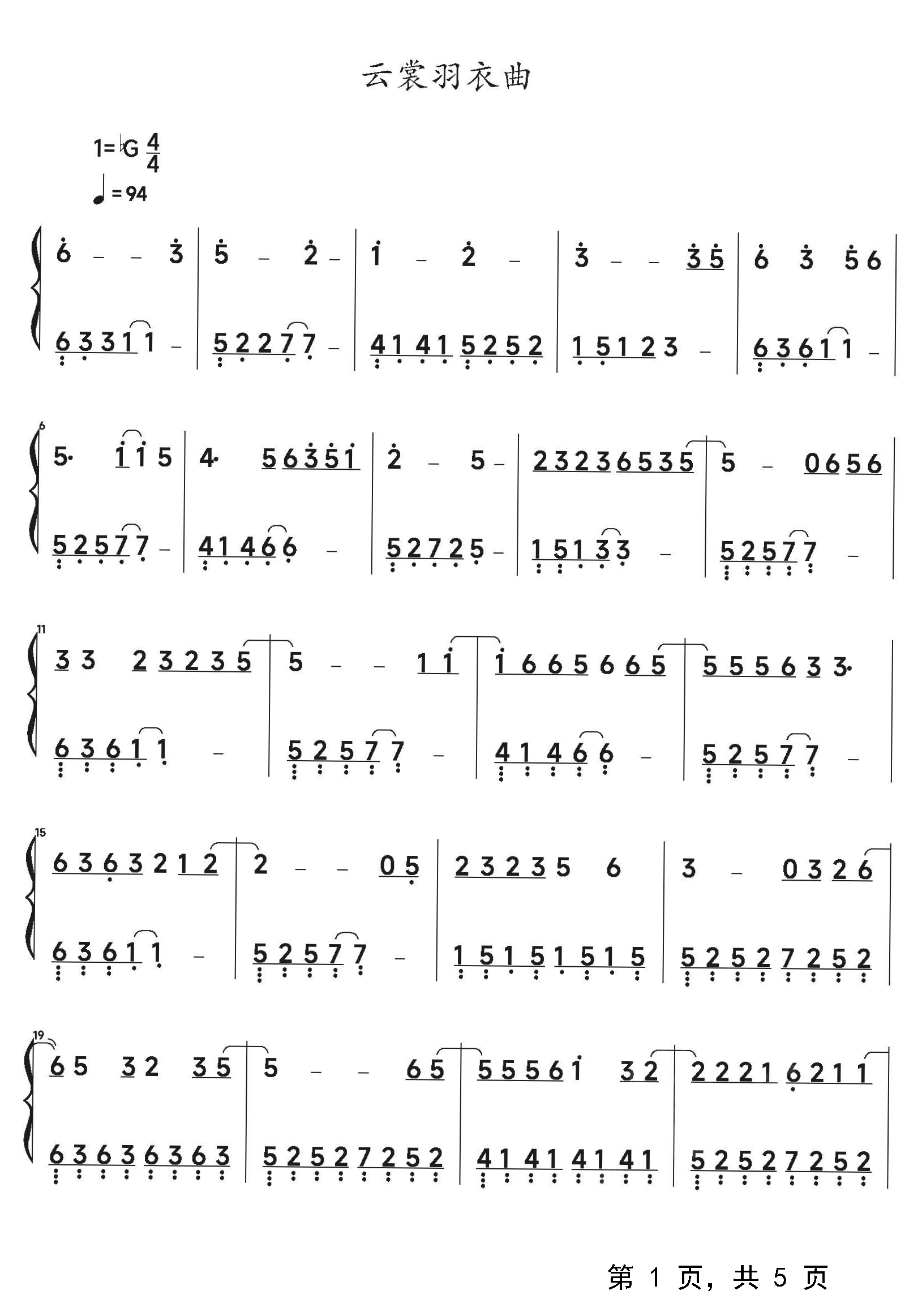 云裳羽衣曲钢琴谱-周深-降G调-流行钢琴简谱