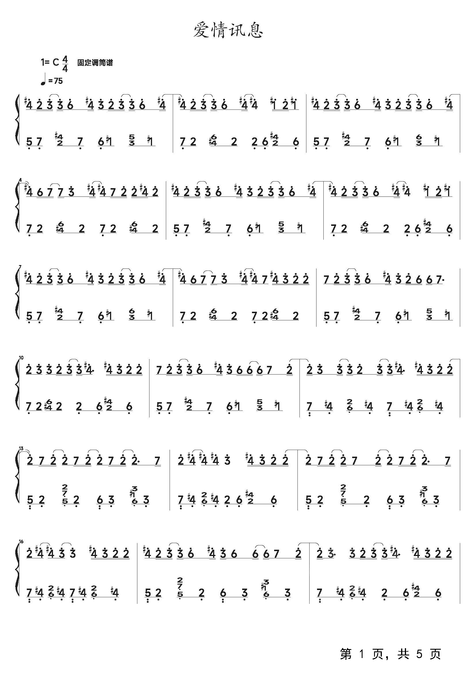 作品分类:流行钢琴简谱